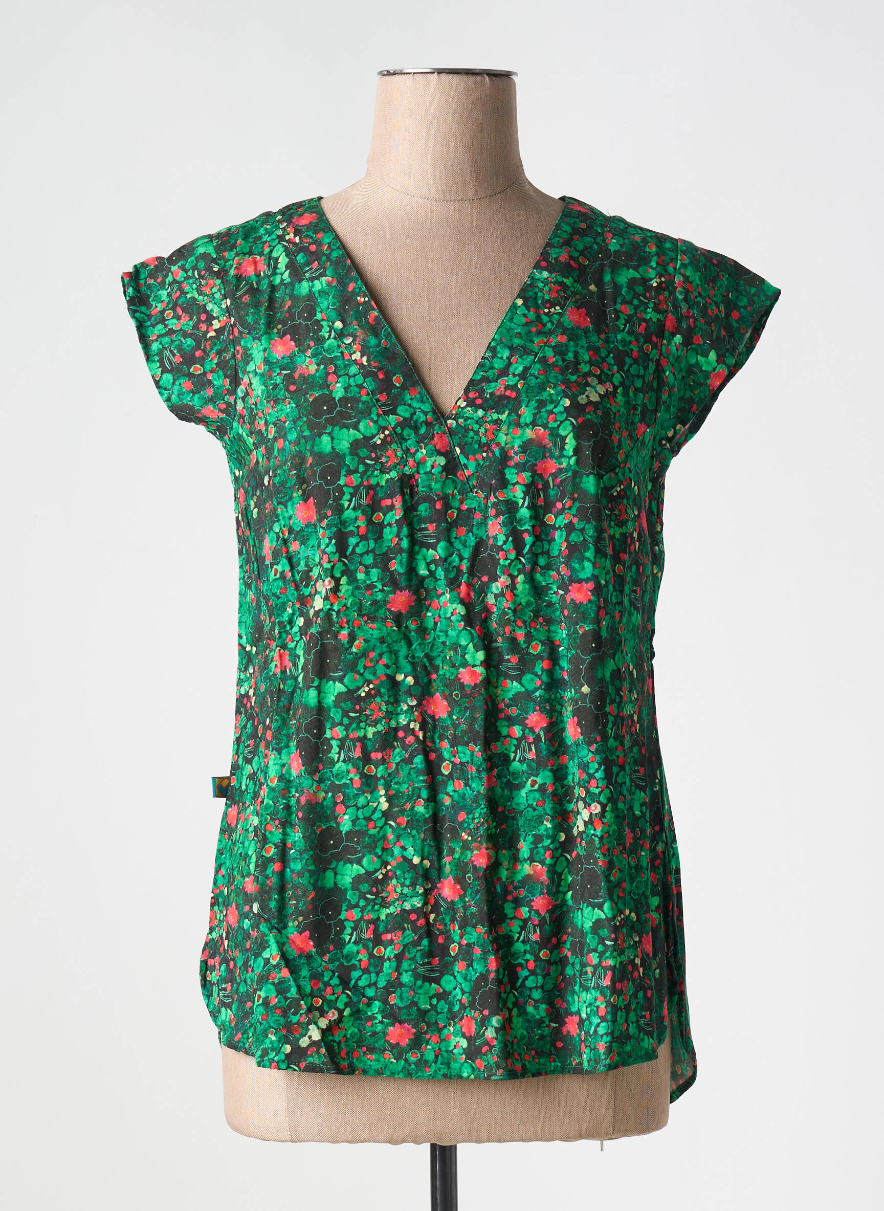 Profitez d’un vrai bon plan mode avec cette blouse KALI YOG pour femme, affichant un joli motif floral sur fond vert qui apporte de la fraîcheur et de l’originalité à votre look. Sa coupe ample et son col en V sont parfaits pour un style décontracté et féminin, à prix tout doux pour se faire plaisir sans se ruiner.