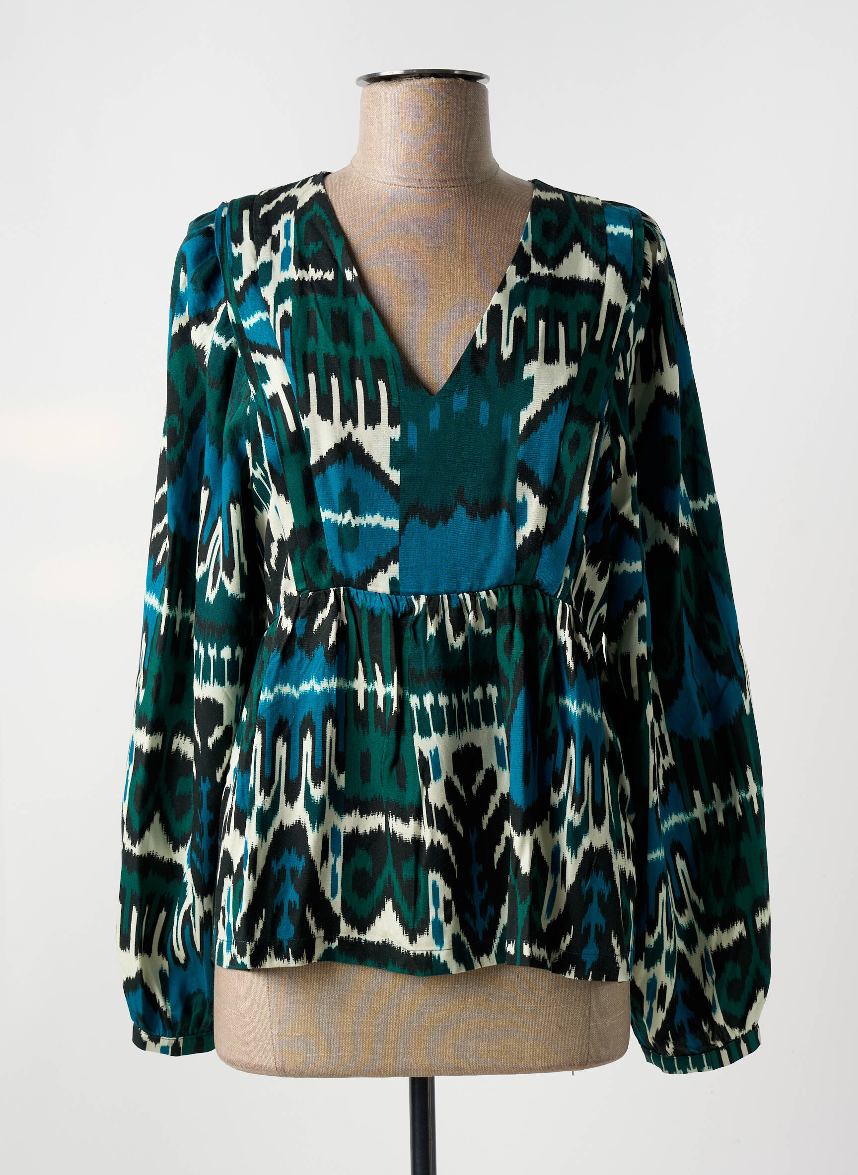Craquez pour cette blouse LA FEE MARABOUTEE à prix mini, idéale pour ajouter une touche d’originalité à votre garde-robe sans vous ruiner. Son imprimé graphique aux nuances de bleu, vert et noir apporte de la fraîcheur et du caractère à toutes vos tenues, tandis que la coupe légèrement cintrée et le décolleté en V valorisent la silhouette en toute subtilité. Avec ses manches longues et son tissu léger, elle s’adapte facilement à toutes les saisons et se porte aussi bien au bureau qu’en sortie, un vrai bon plan mode à ne pas manquer.