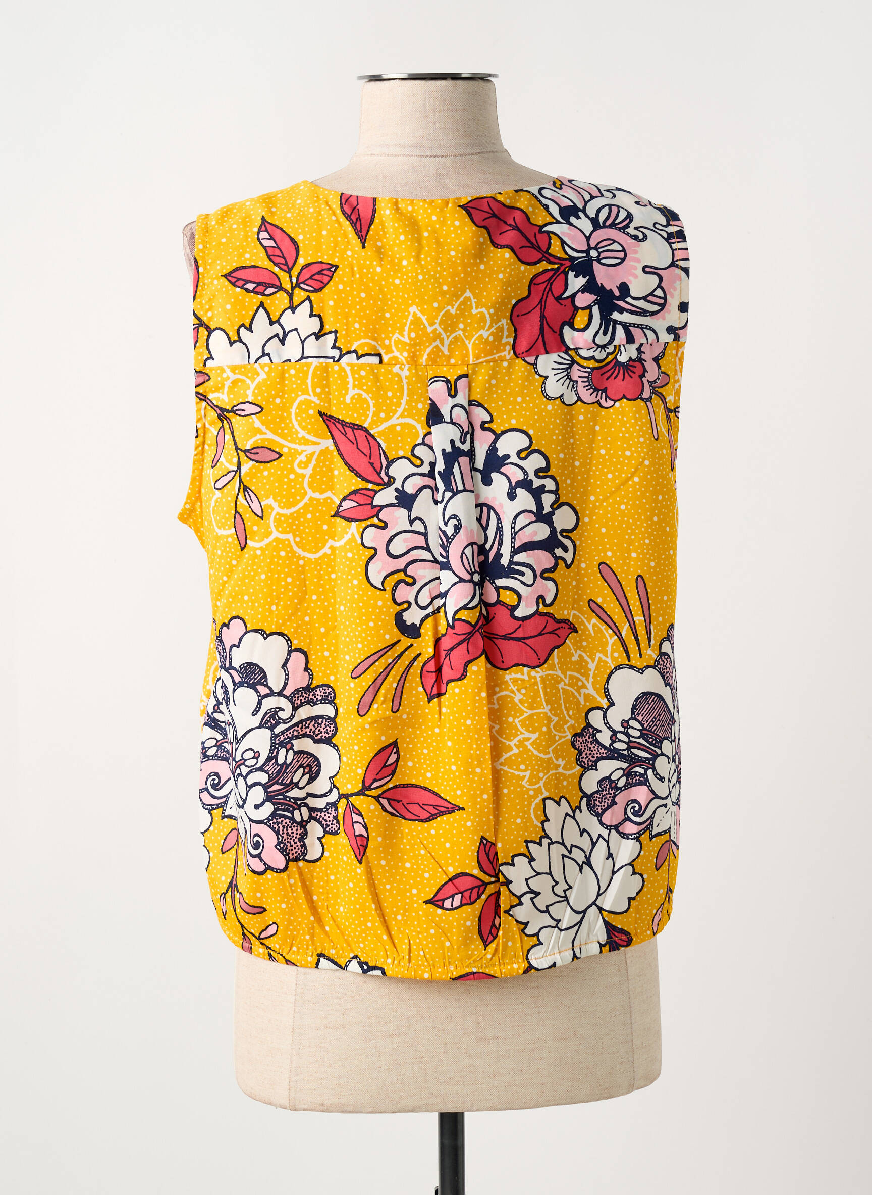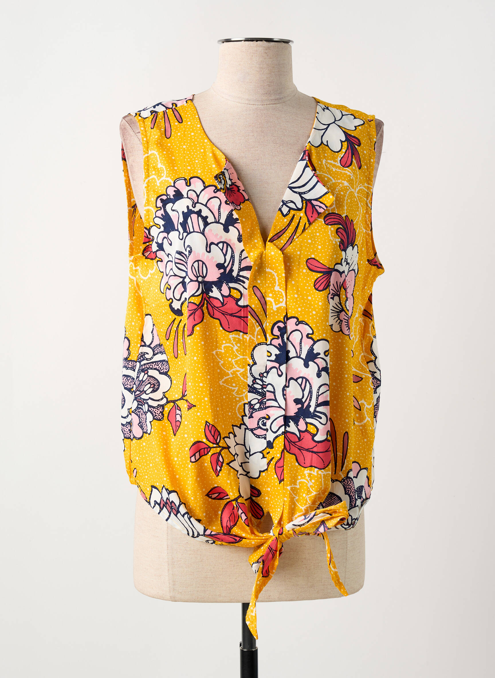 Craquez pour cette blouse LA FIANCEE DU MEKONG à prix mini, un vrai bon plan pour apporter une touche de couleur et d’originalité à votre dressing sans vous ruiner. Son imprimé floral éclatant sur fond jaune lumineux apporte tout de suite une note ensoleillée à votre look, tandis que sa coupe sans manches et son joli nœud à la taille offrent une silhouette légère et féminine, parfaite pour la belle saison.