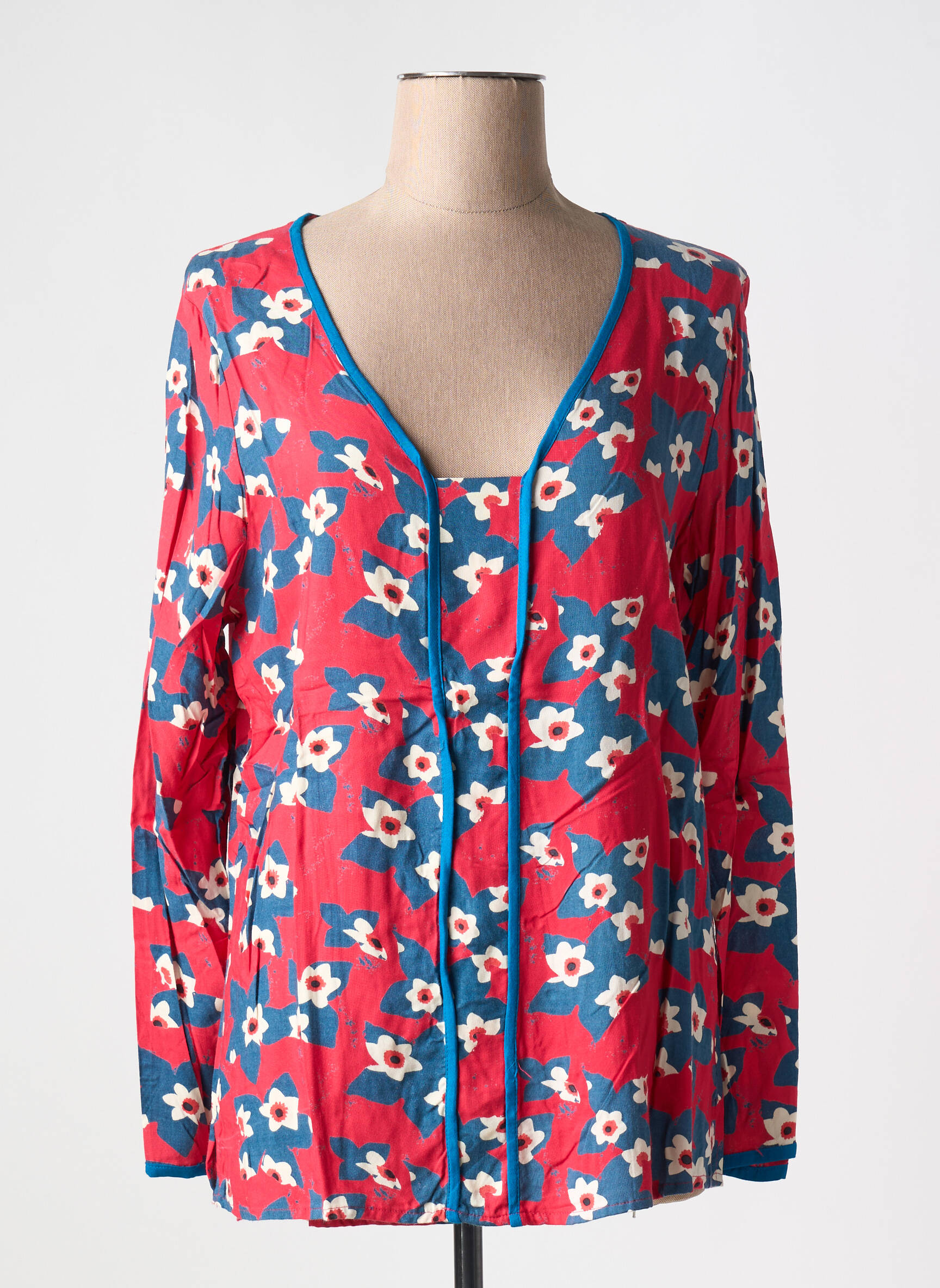 Profitez d’un vrai bon plan avec cette blouse pour femme signée LA FIANCEE DU MEKONG, idéale pour apporter une touche de couleur originale à votre garde-robe sans vous ruiner. Sa coupe fluide et son imprimé fleuri aux teintes rouges, blanches et bleues rehaussés par un liseré bleu, font de cette pièce un indispensable à petit prix pour celles qui recherchent à la fois style et économies.