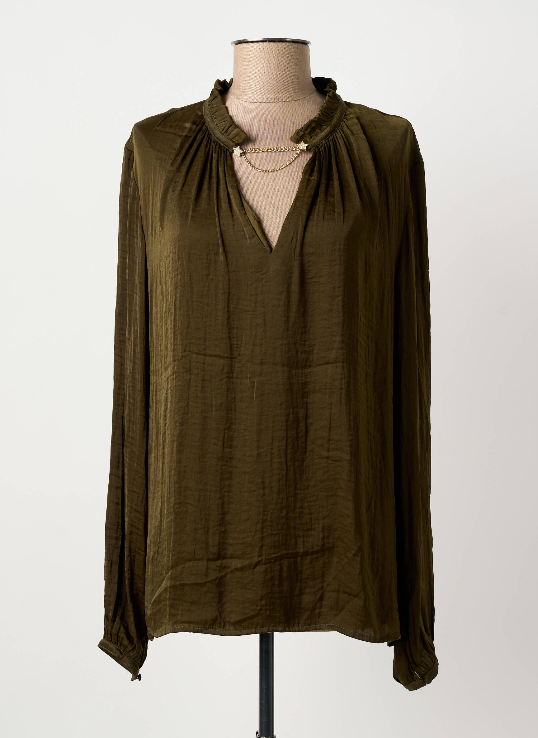 Profitez d’un véritable bon plan avec cette blouse LIU JO pour femme, proposée à prix mini pour un style chic à petit budget. Son tissu fluide et sa couleur kaki apportent une touche d’élégance discrète, tandis que le col légèrement froncé et l’ouverture en V mettent en valeur la silhouette. C’est la pièce idéale pour actualiser votre garde-robe avec une marque tendance sans vous ruiner.