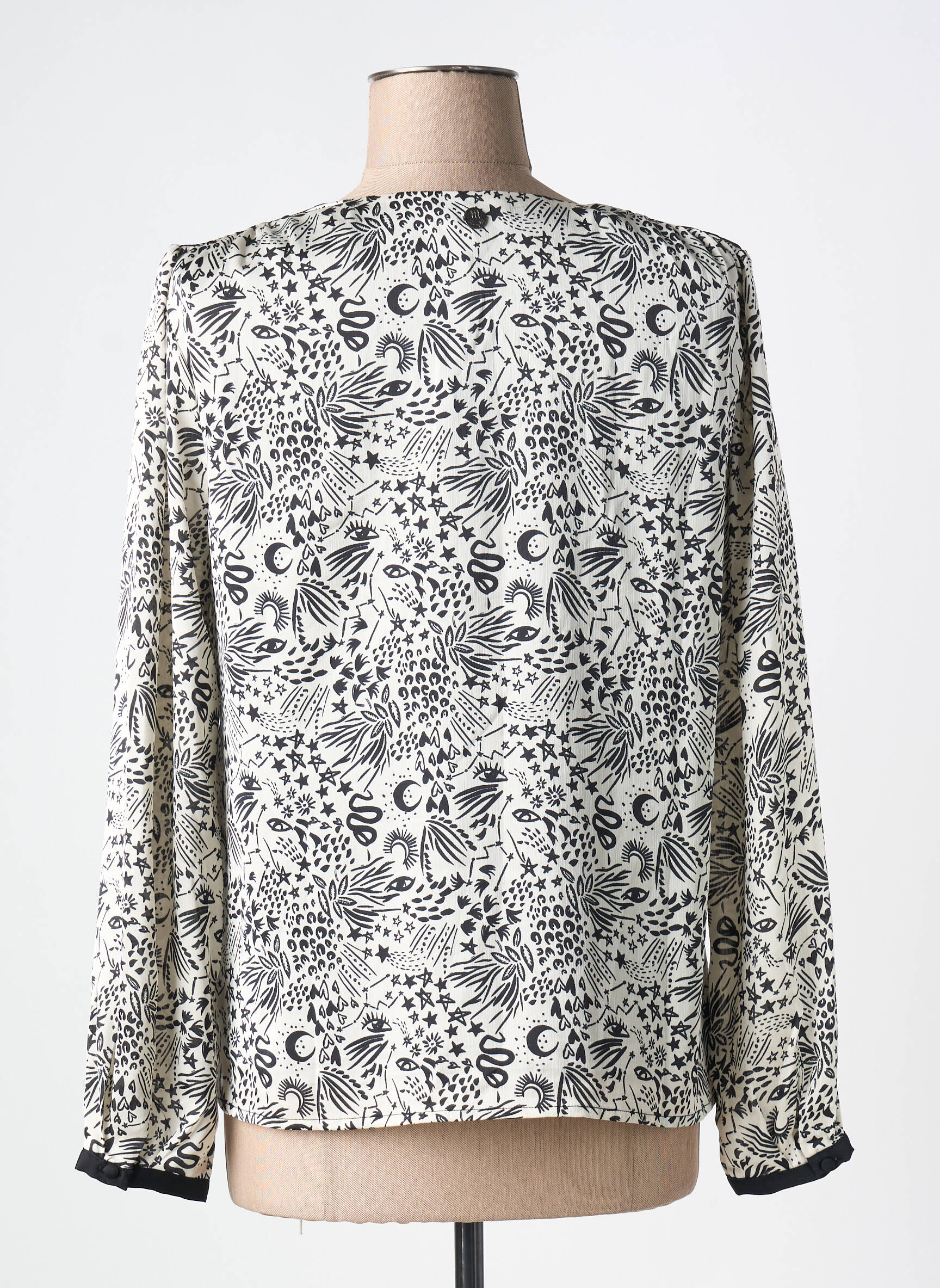Profitez d’un vrai bon plan avec cette blouse LOLA ESPELETA pour femme, au look chic et tendance sans vous ruiner. Son imprimé noir et blanc graphique, relevé par de délicats empiècements contrastants aux épaules et manches, donne une touche sophistiquée à toutes vos tenues, idéale pour moderniser votre dressing à prix tout doux.
