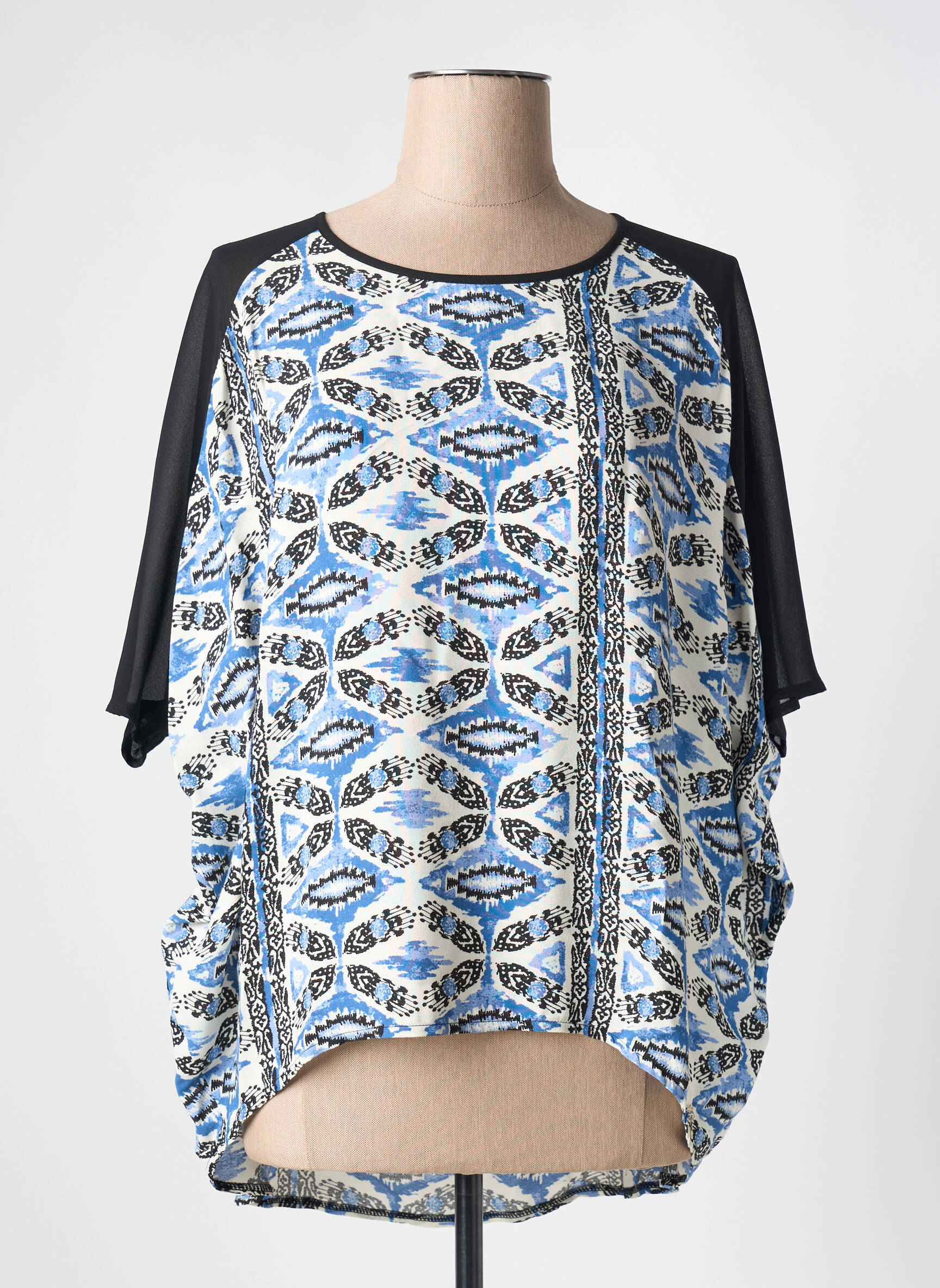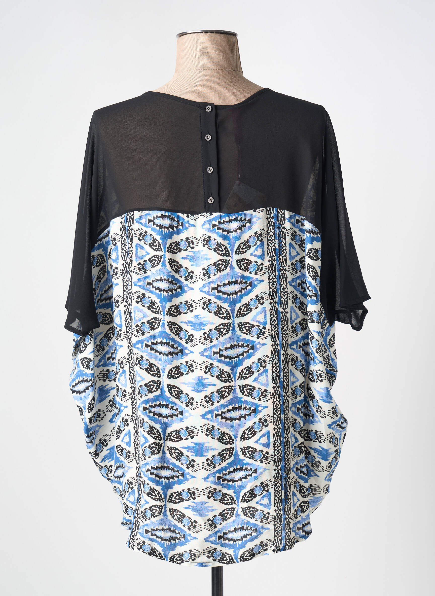 Profitez d’un bon plan mode avec cette blouse LOLITAS & LOLOS pour femme qui séduit par son imprimé géométrique bleu et blanc rehaussé de manches noires légèrement transparentes, idéale pour donner une touche de fraîcheur et d’originalité à votre garde-robe sans vous ruiner. Sa coupe ample et fluide assure un confort au quotidien, parfait pour créer un look tendance à petit prix.