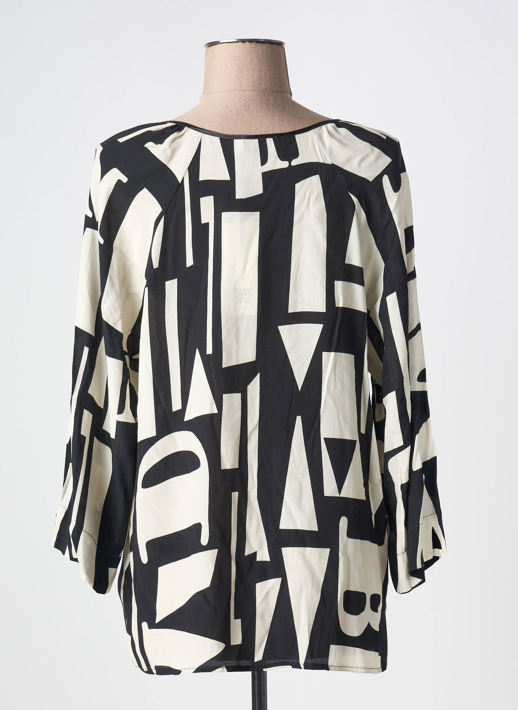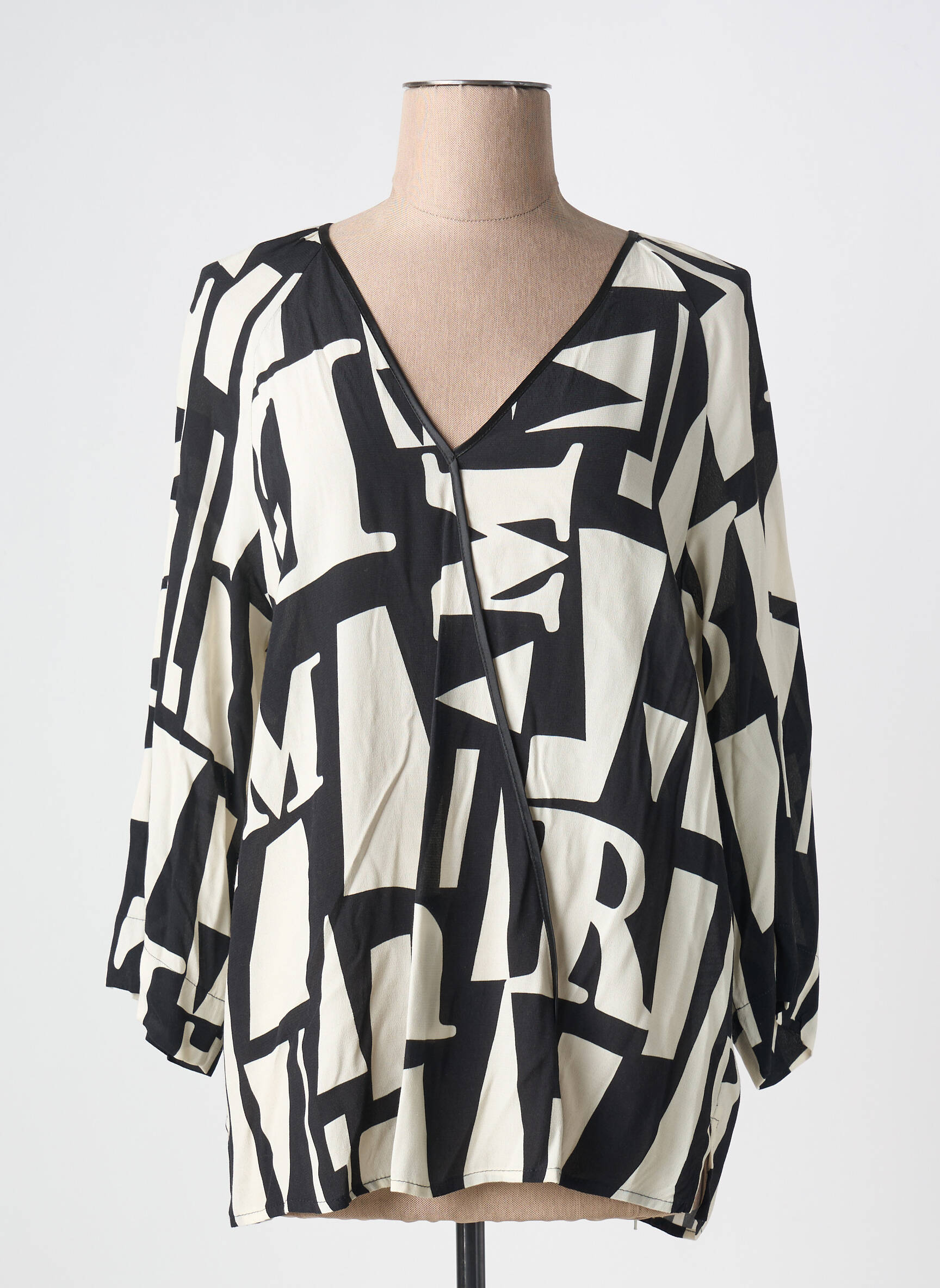 Profitez d’une occasion unique de vous offrir une blouse MARIA BELLENTANI à prix mini, avec ce modèle au style graphique noir et blanc qui attire tous les regards grâce à son imprimé audacieux façon lettrage XXL. Son encolure en V croisée et sa coupe décontractée en font une pièce tendance et ultra confortable, idéale pour booster un look du quotidien sans se ruiner.