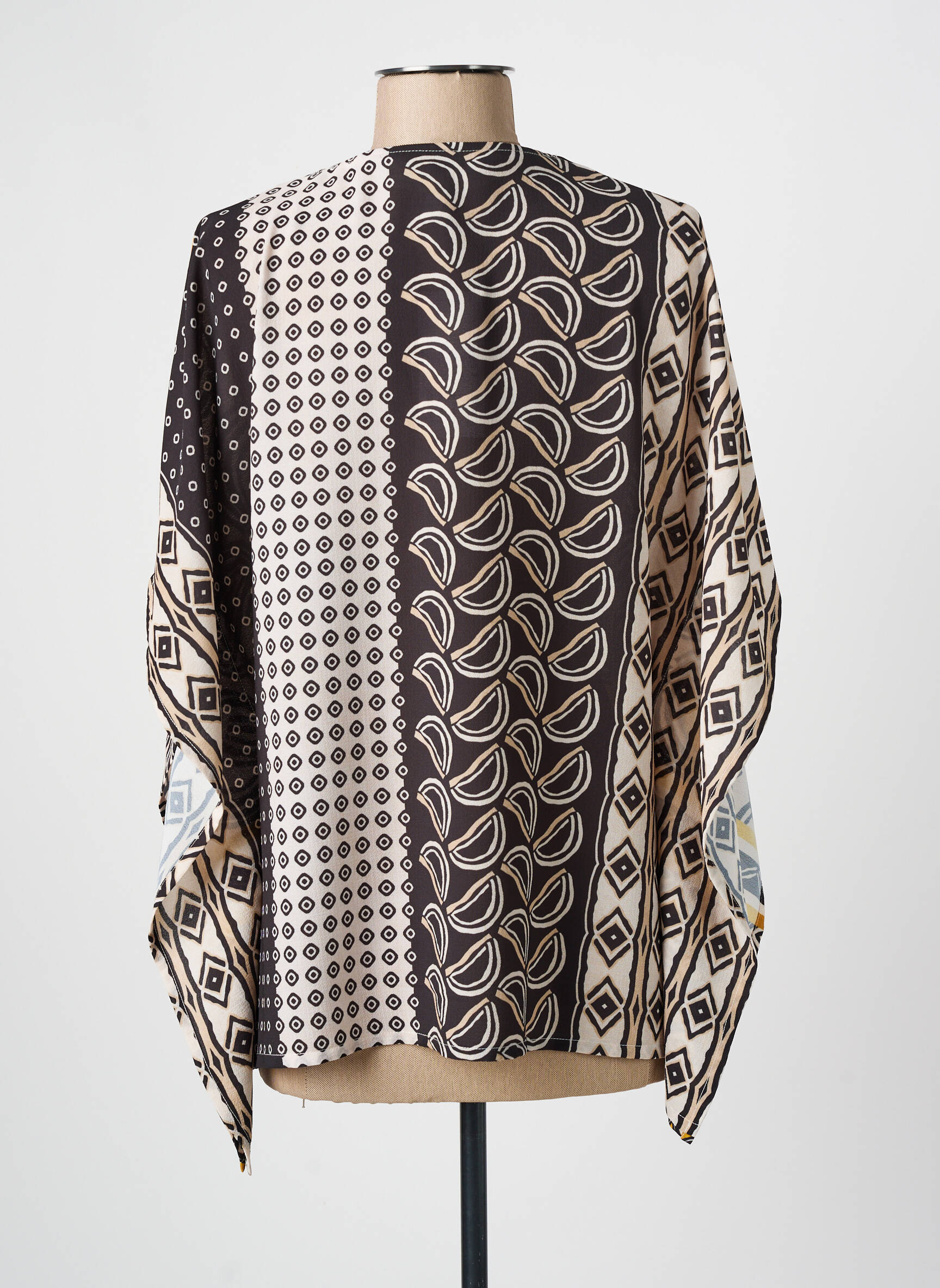 Profitez d’un bon plan mode avec cette blouse MERI & ESCA pour femme, qui séduit par son imprimé graphique original mêlant des cercles stylisés noirs et jaunes à un patchwork de motifs en bas, le tout dans une coupe fluide et confortable. Idéale pour donner du style à votre quotidien sans vous ruiner, elle apporte une touche moderne et colorée à toutes vos tenues tout en restant ultra accessible, parfait pour se faire plaisir sans compromis sur l’allure.