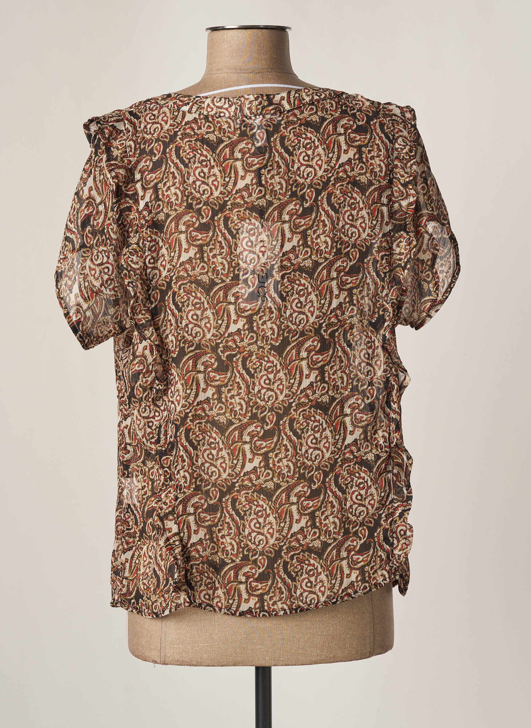Profitez d’un véritable bon plan avec cette blouse MERI & ESCA pour femme, proposée à prix cassé pour un look tendance sans se ruiner. Légère et fluide, elle séduit par son imprimé délicat mêlant des tons bruns et beige dans un motif original et raffiné, tandis que sa coupe souple et son col en V apportent une touche féminine idéale pour les journées décontractées ou les sorties estivales. Voici une occasion parfaite de renouveler votre garde-robe avec une pièce stylée à petit prix.