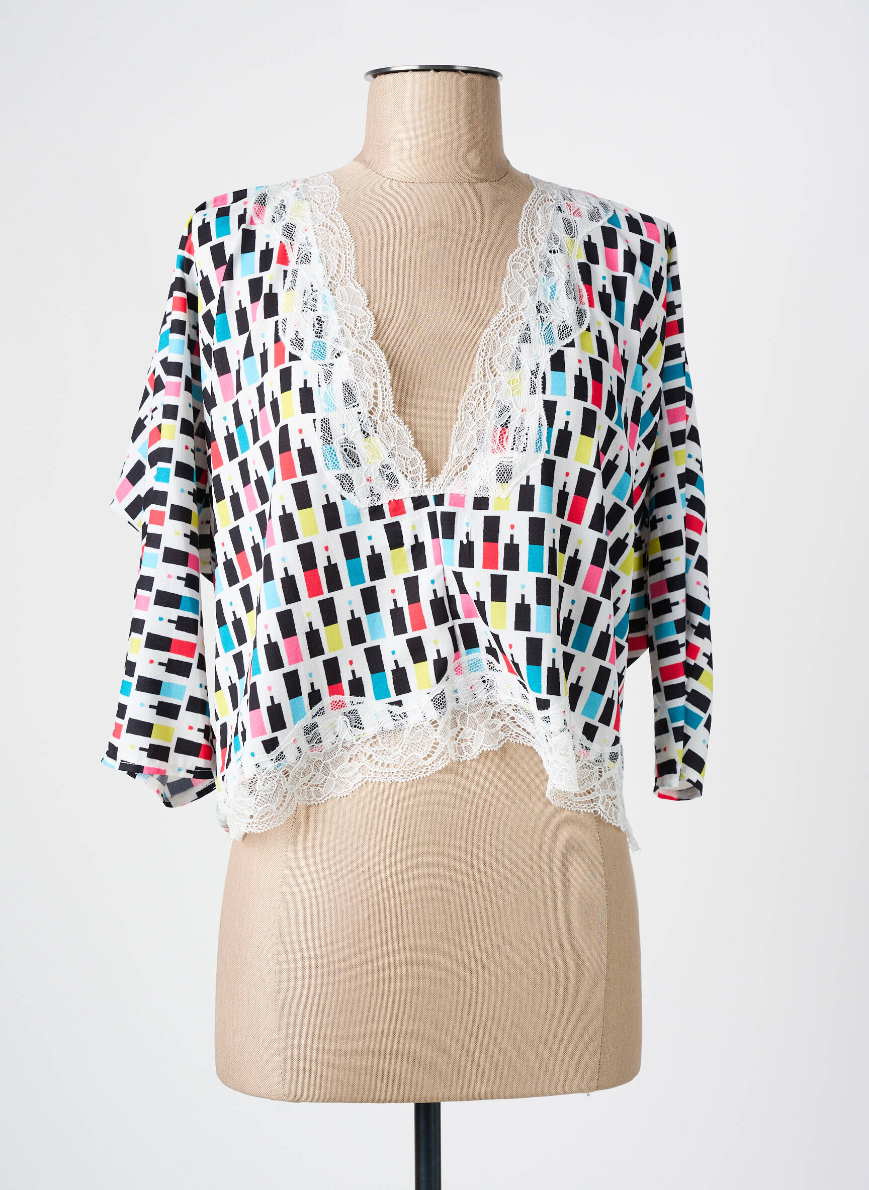 Profitez d’un véritable bon plan avec cette blouse pour femme signée MOLLY BRACKEN, idéale pour apporter une note de fantaisie à votre garde-robe sans vous ruiner. Sa coupe légèrement ample et son motif graphique multicolore apportent une touche originale à vos tenues de tous les jours, tandis que le décolleté en V bordé de dentelle délicate offre une finition féminine et raffinée. Cette pièce tendance permet d’affirmer votre style tout en faisant des économies grâce à notre sélection à prix réduit.