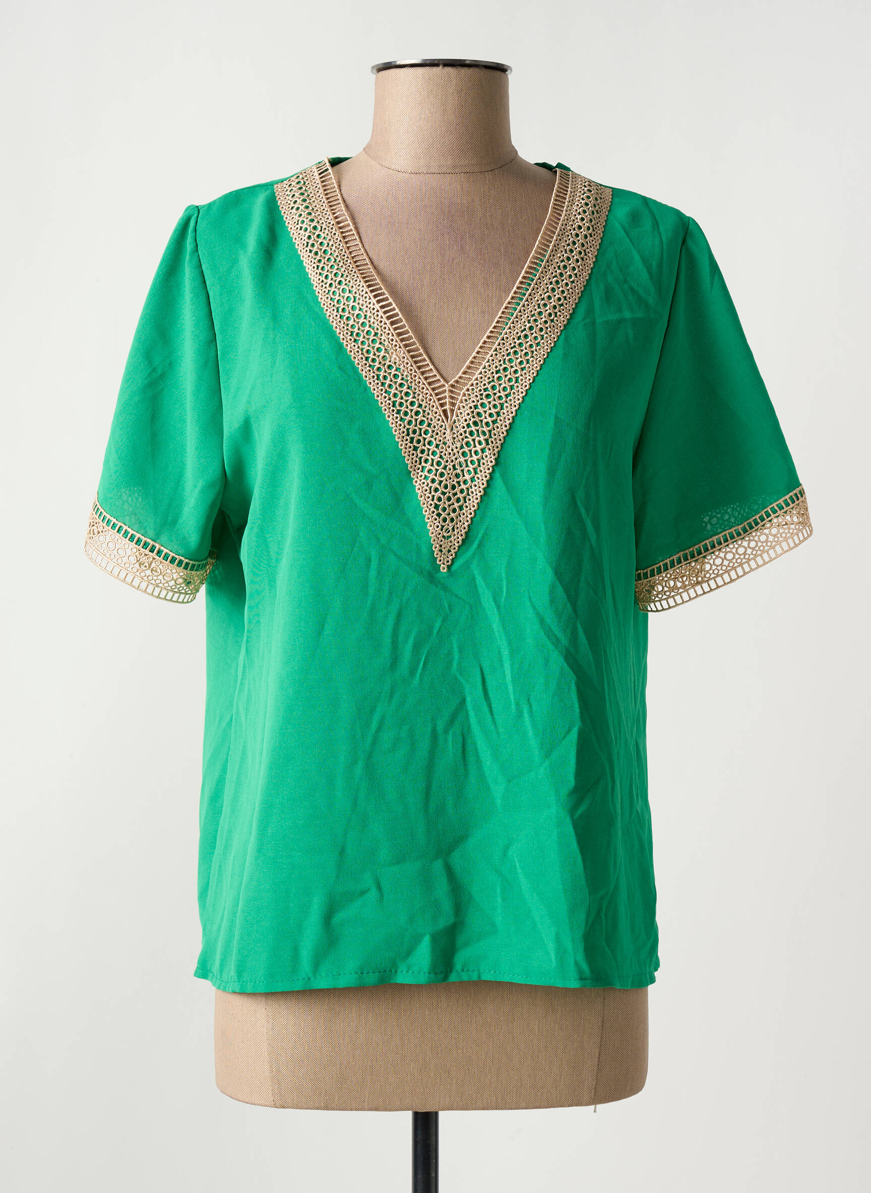 Craquez pour cette blouse NEW COLLECTION à prix irrésistible, idéale pour donner une touche de fraîcheur à votre garde-robe sans vous ruiner. Sa couleur verte éclatante est mise en valeur par un élégant col en V orné d'une délicate bordure ajourée, que l’on retrouve également sur les manches courtes pour un look soigné et tendance. Ce modèle confortable et facile à porter s’adapte à toutes vos envies et reste une véritable affaire pour celles qui cherchent à se faire plaisir à petit prix.