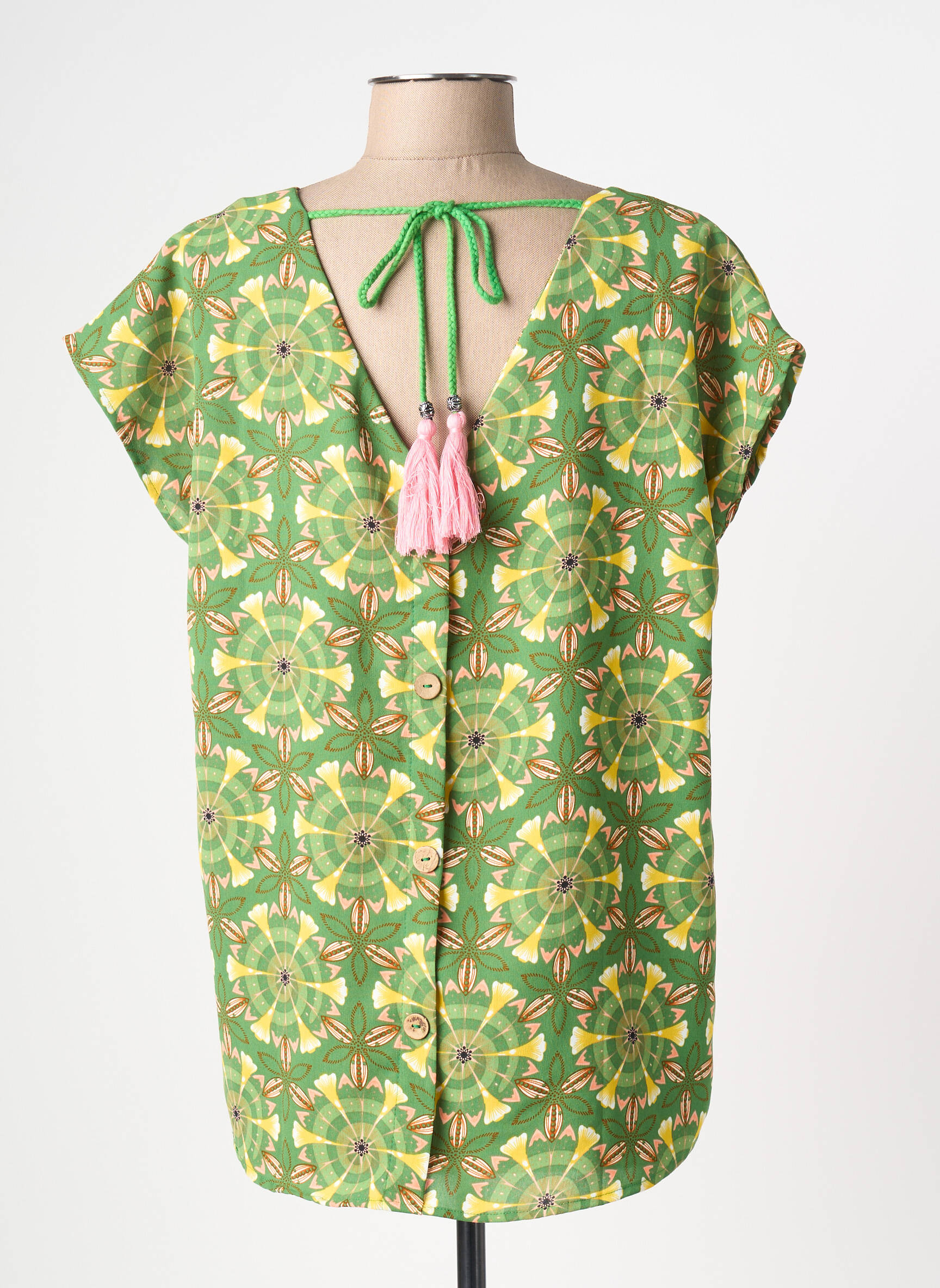 Craquez pour cette blouse Sarah John à prix irrésistible, idéale pour apporter une touche de pep’s à votre garde-robe sans vous ruiner. Son motif graphique aux nuances de vert et de jaune crée un effet visuel unique, parfait pour égayer vos tenues du quotidien tout en profitant d’une offre bon plan à ne pas manquer. Sa coupe décontractée et son encolure en V apportent confort et féminité pour un look tendance à petit prix.