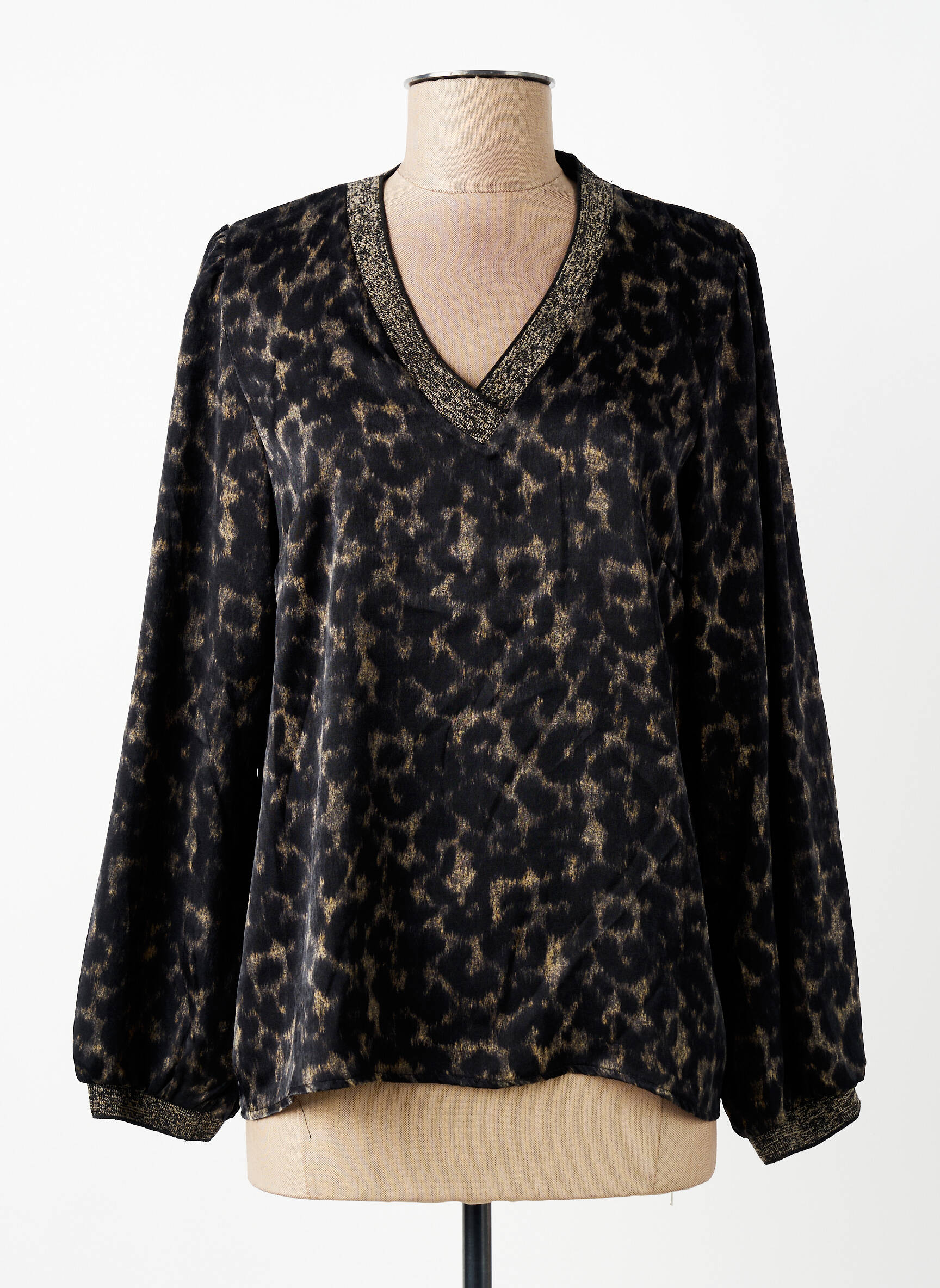 Profitez d’une occasion unique de vous offrir cette blouse femme signée Signe Nature à prix réduit, un vrai bon plan pour les amatrices de mode. On adore son imprimé animalier tendance, rehaussé de légers reflets dorés qui apportent une touche de chic, et ses finitions métallisées au col V ainsi qu’aux poignets qui lui donnent du caractère. C’est la pièce idéale pour dynamiser une tenue du quotidien sans se ruiner.