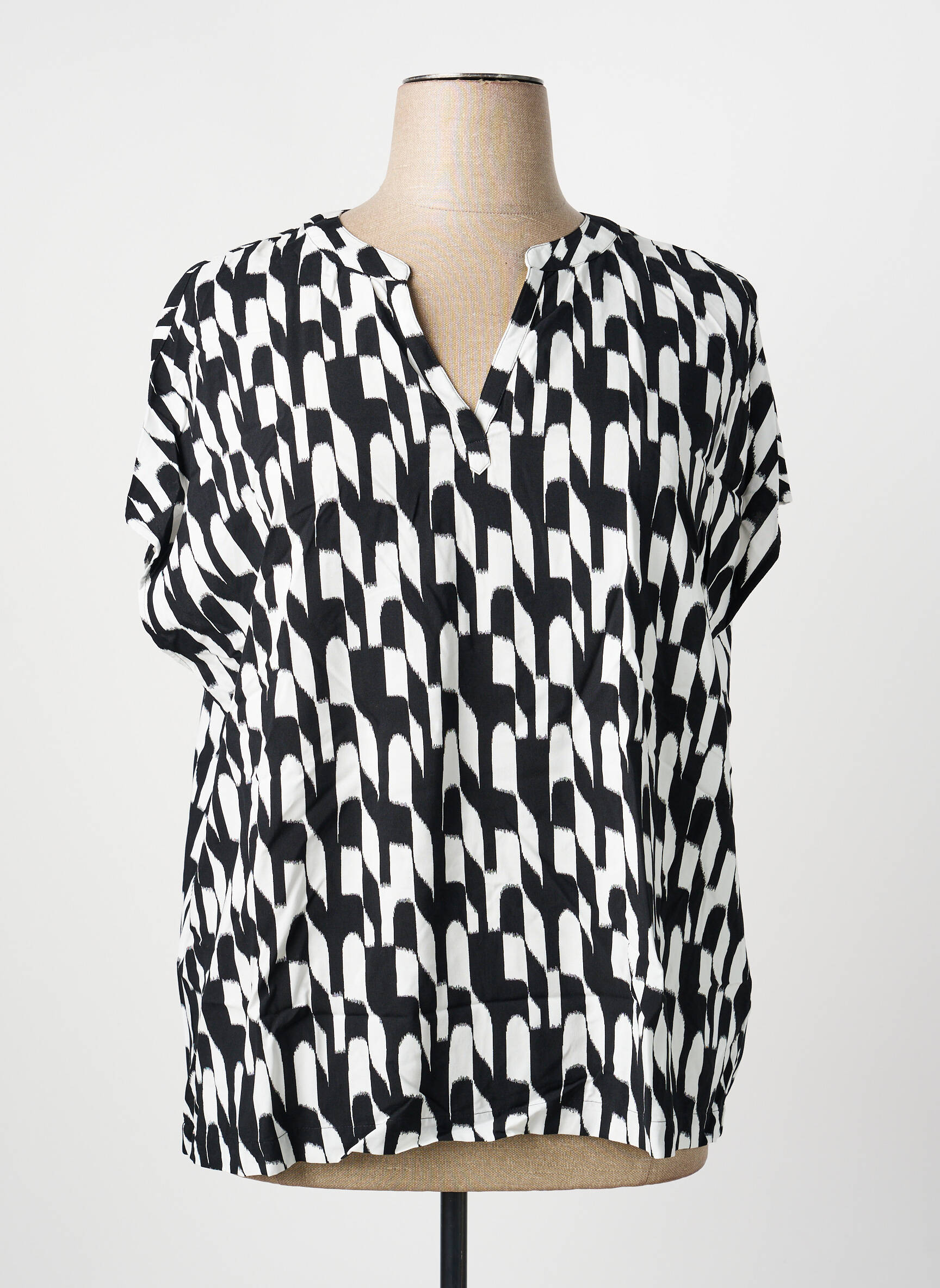 Profitez d’un bon plan mode avec cette blouse pour femme de la marque STREET ONE, une pièce tendance à prix réduit. Son motif graphique noir et blanc apporte une touche moderne et audacieuse à votre garde-robe, tandis que sa coupe fluide et son encolure en V fendue assurent un porté confortable et stylé au quotidien. C’est l’occasion idéale de craquer pour un look original sans se ruiner.