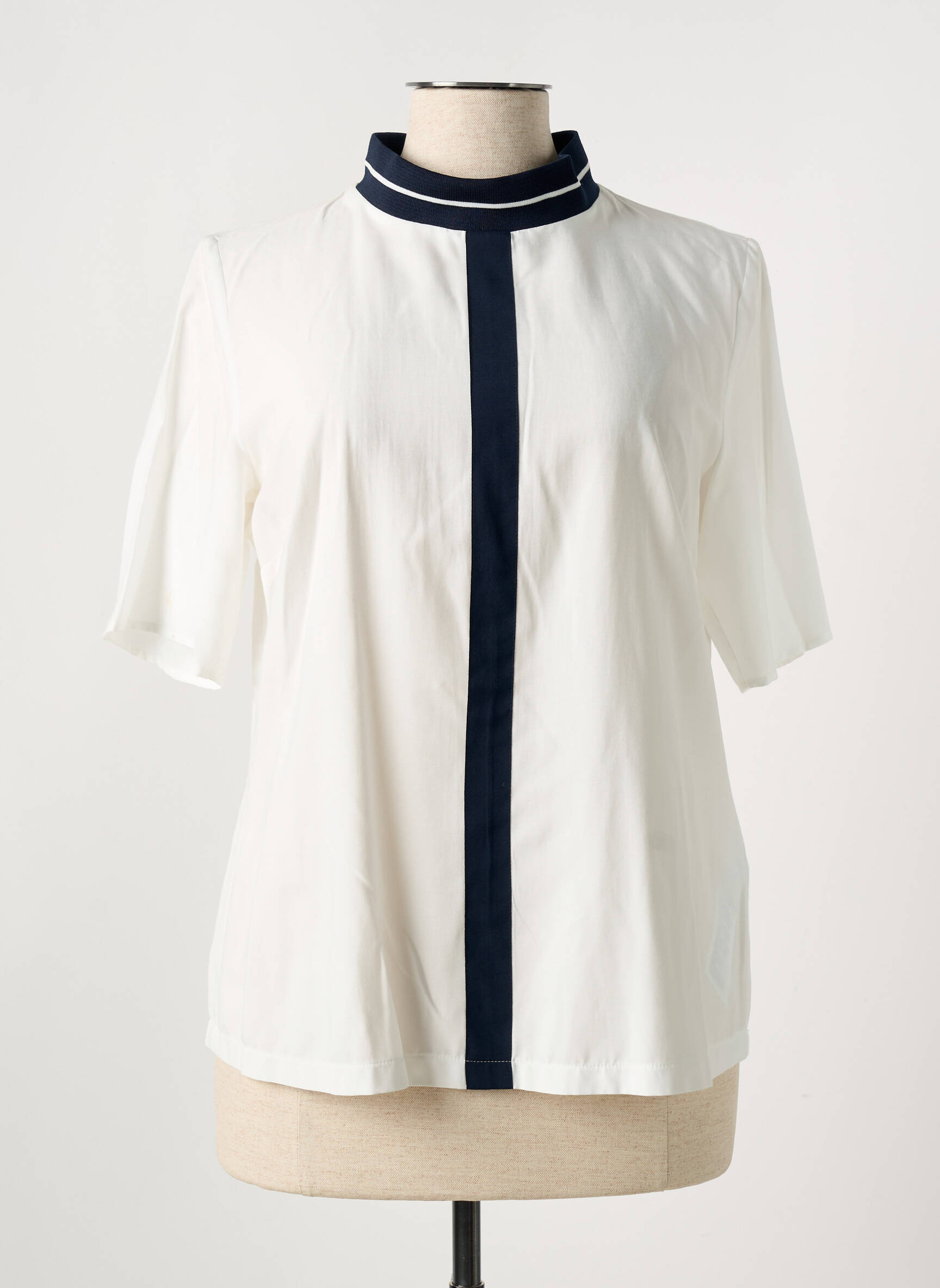 Profitez d'une opportunité à ne pas manquer avec cette blouse femme TAIFUN à prix mini, parfaite pour sublimer votre tenue sans vous ruiner. Sa coupe droite et élégante est rehaussée par un contraste de bandes noires sur le col montant et au centre, ajoutant une touche sophistiquée et moderne à ce basique intemporel. Idéale aussi bien au quotidien qu’au bureau, elle apporte une allure soignée pour un budget maîtrisé.