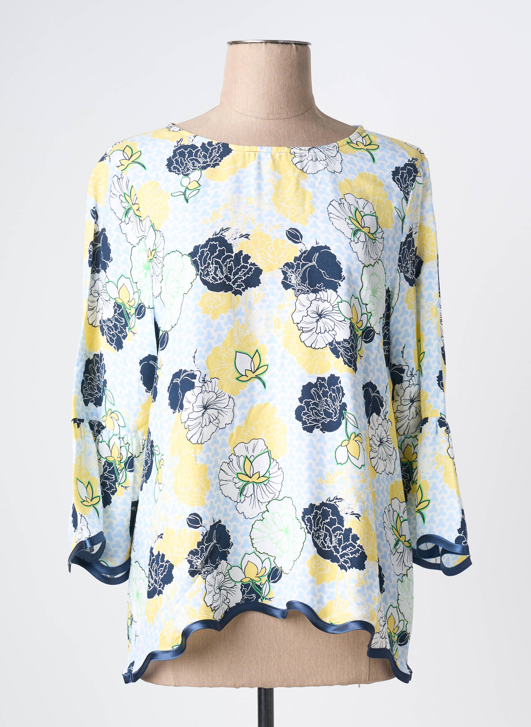Faites le plein de style sans vous ruiner avec cette blouse pour femme signée THOMAS RABE, une véritable opportunité à prix mini pour renouveler sa garde-robe. Sa coupe fluide et son motif floral aux tons de jaune, bleu et touches de vert ajoutent une touche de fraîcheur à toutes vos tenues. Les manches trois-quarts et la finition ondulée à l’ourlet soulignent une allure élégante et facile à porter au quotidien, idéale pour profiter d’une pièce de marque à prix doux.