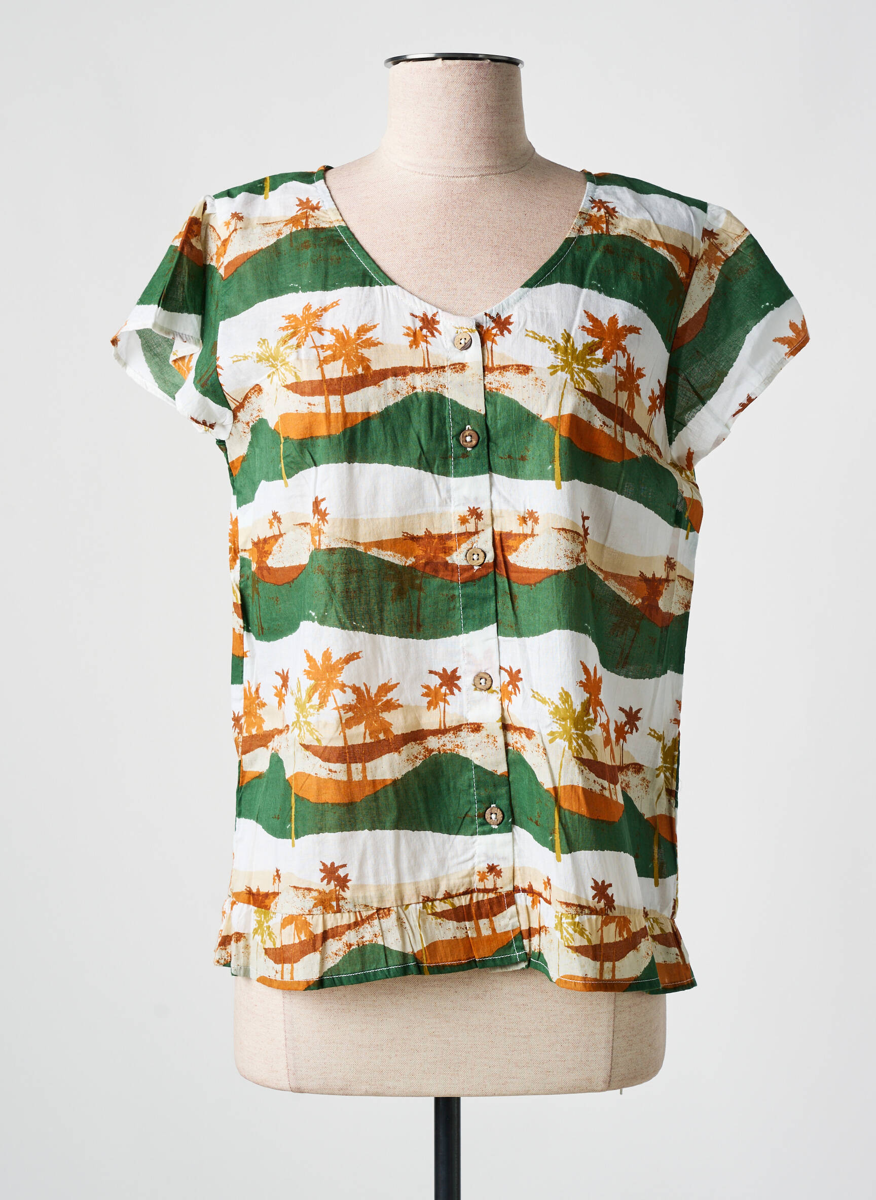 Profitez d’un incroyable bon plan avec ce chemisier AGATHE & LOUISE pour femme, qui allie originalité et petit prix pour donner un souffle d’été à votre garde-robe. Sa coupe fluide met en valeur une impression colorée aux motifs exotiques de palmiers et de paysages tropicaux, idéale pour apporter une note légère et décontractée à toutes vos tenues. Ce modèle boutonné sur le devant vous accompagnera aussi bien au quotidien qu’en vacances, sans compromis sur le style ni sur votre budget.