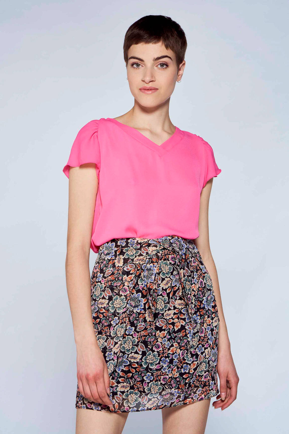 Votre look est tout à fait tendance grâce à cette blouse à manches courtes rose BELLITA. Combinez-la avec votre jupe ou votre pantalon favori pour un look élégant pour toutes les occasions..