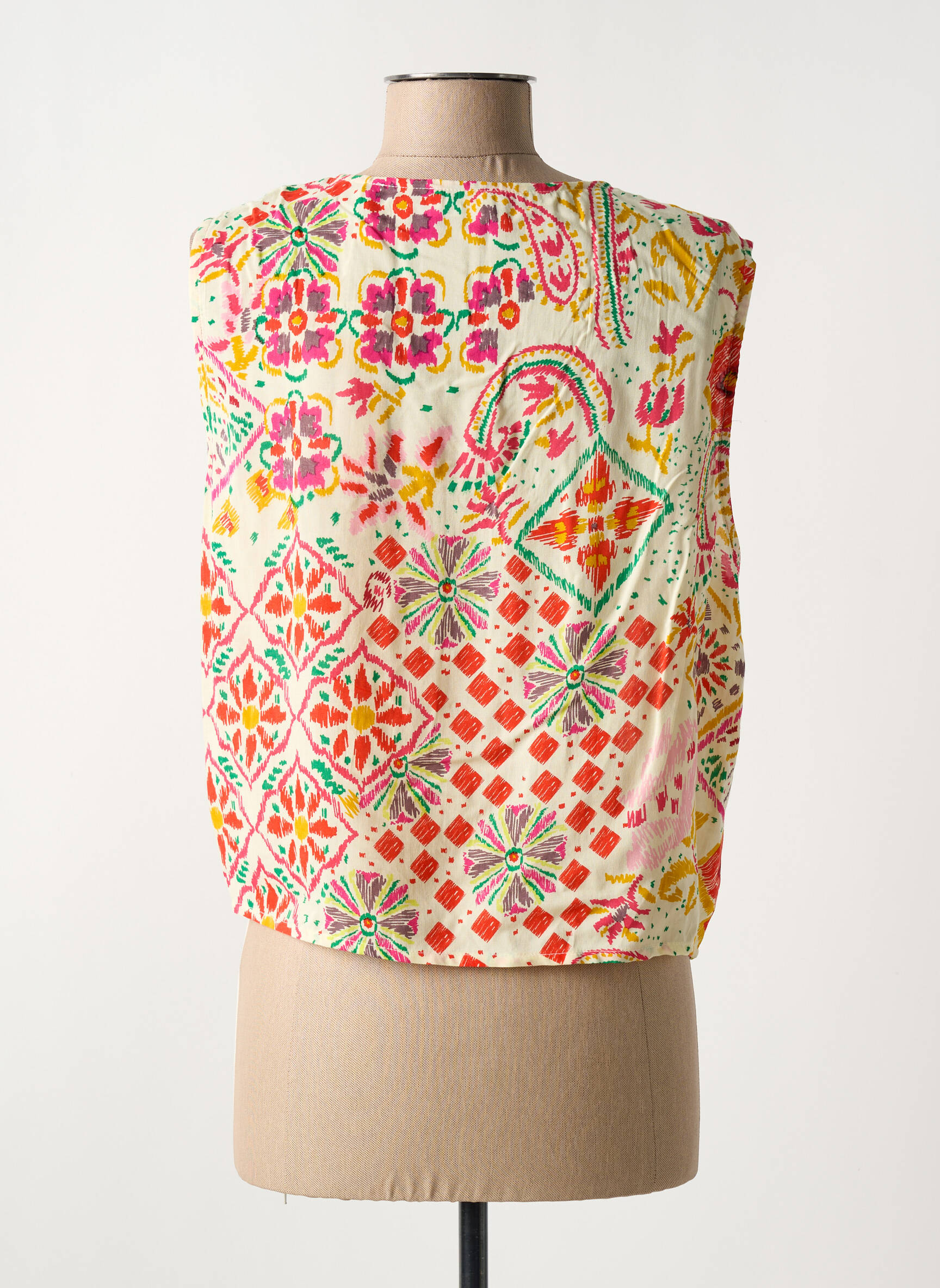 Craquez pour ce chemisier C'EST BEAU LA VIE à petit prix, parfait pour donner du pep’s à votre dressing sans vous ruiner, avec son motif coloré façon patchwork, sa coupe sans manches et son joli nœud sur le devant qui apporte une touche de fraîcheur estivale à toutes vos tenues.