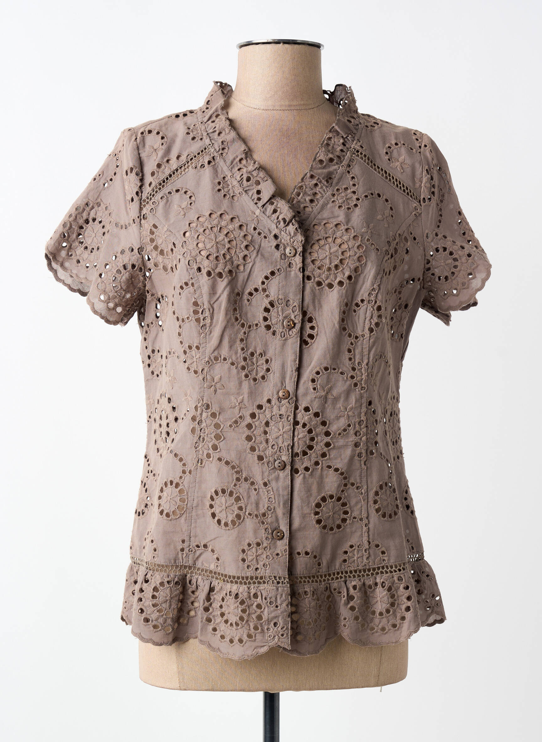 Profitez d’un bon plan mode avec ce chemisier FRED SABATIER pour femme, une pièce élégante à petit prix qui séduit par sa coupe féminine et ses détails ajourés délicatement travaillés. Son coloris sobre s’associe facilement à toutes vos tenues et sa finition volantée à la base apporte une touche raffinée pour un look chic sans effort. C’est l’occasion idéale de donner du style à votre garde-robe en faisant de belles économies.