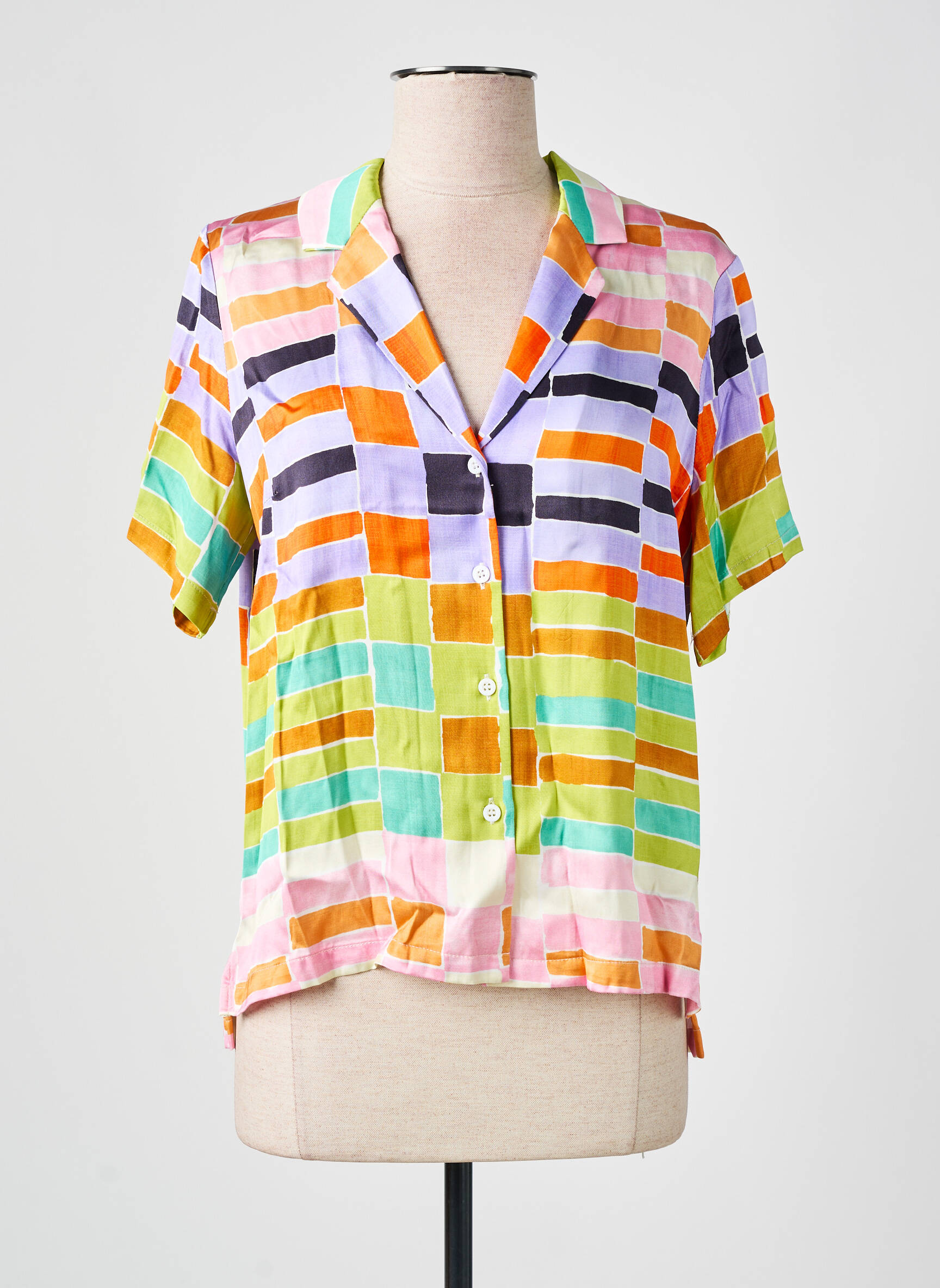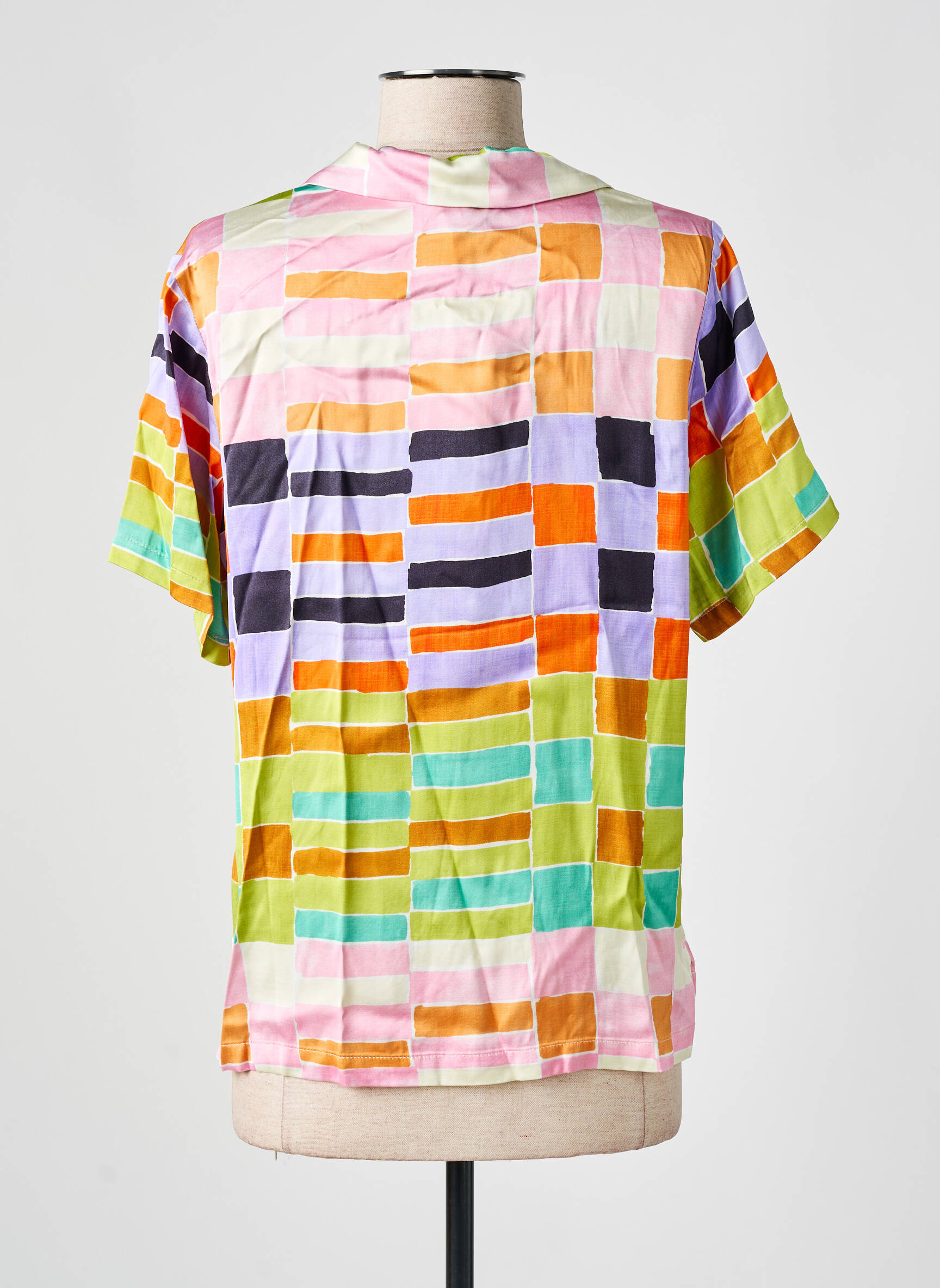 Avec son allure originale, ce chemisier s’adapte aussi bien à un jean taille haute pour un look décontracté qu’à une jupe unie pour une touche plus féminine. Il se marie facilement avec des sandales ou des baskets blanches pour une tenue estivale, ou glissé dans un pantalon fluide uni pour aller au bureau avec style. Pensez à ajouter quelques accessoires minimalistes pour laisser parler son imprimé dynamique.