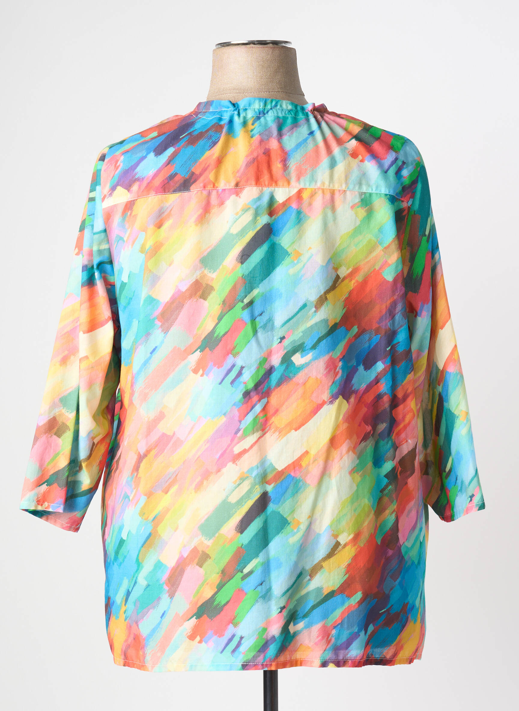 Profitez d'une véritable affaire avec ce chemisier pour femme signé GUY DUBOUIS, parfait pour égayer votre garde-robe sans vous ruiner. Son motif multicolore façon coups de pinceau apporte une touche artistique et dynamique à toutes vos tenues, tandis que la coupe fluide et les manches trois quarts garantissent un confort optimal au quotidien. Ce modèle, à la fois original et facile à porter, se distingue par son encolure ronde légèrement froncée et sa fermeture boutonnée sur le devant, offrant une allure moderne à prix doux.