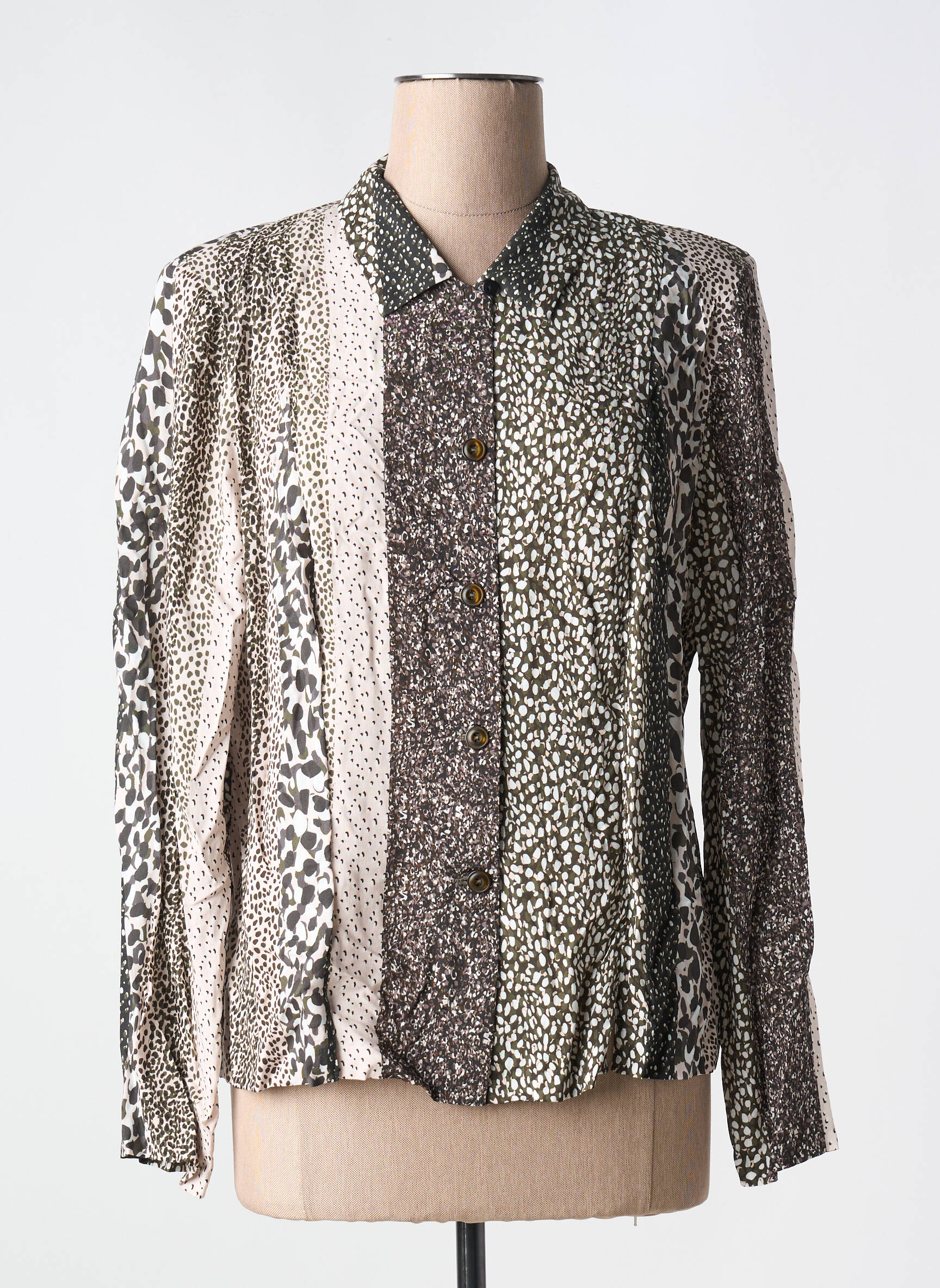Craquez pour ce chemisier GUY DUBOUIS pour femme, une pièce originale à prix mini qui apportera une touche de style animalier très tendance à votre garde-robe. Son motif mêle élégamment différentes inspirations léopard dans des tons naturels, et sa coupe droite ainsi que son col classique offrent une silhouette chic et moderne parfaite pour toutes vos envies mode. Profitez de cette opportunité pour adopter une pièce de créateur sans vous ruiner.