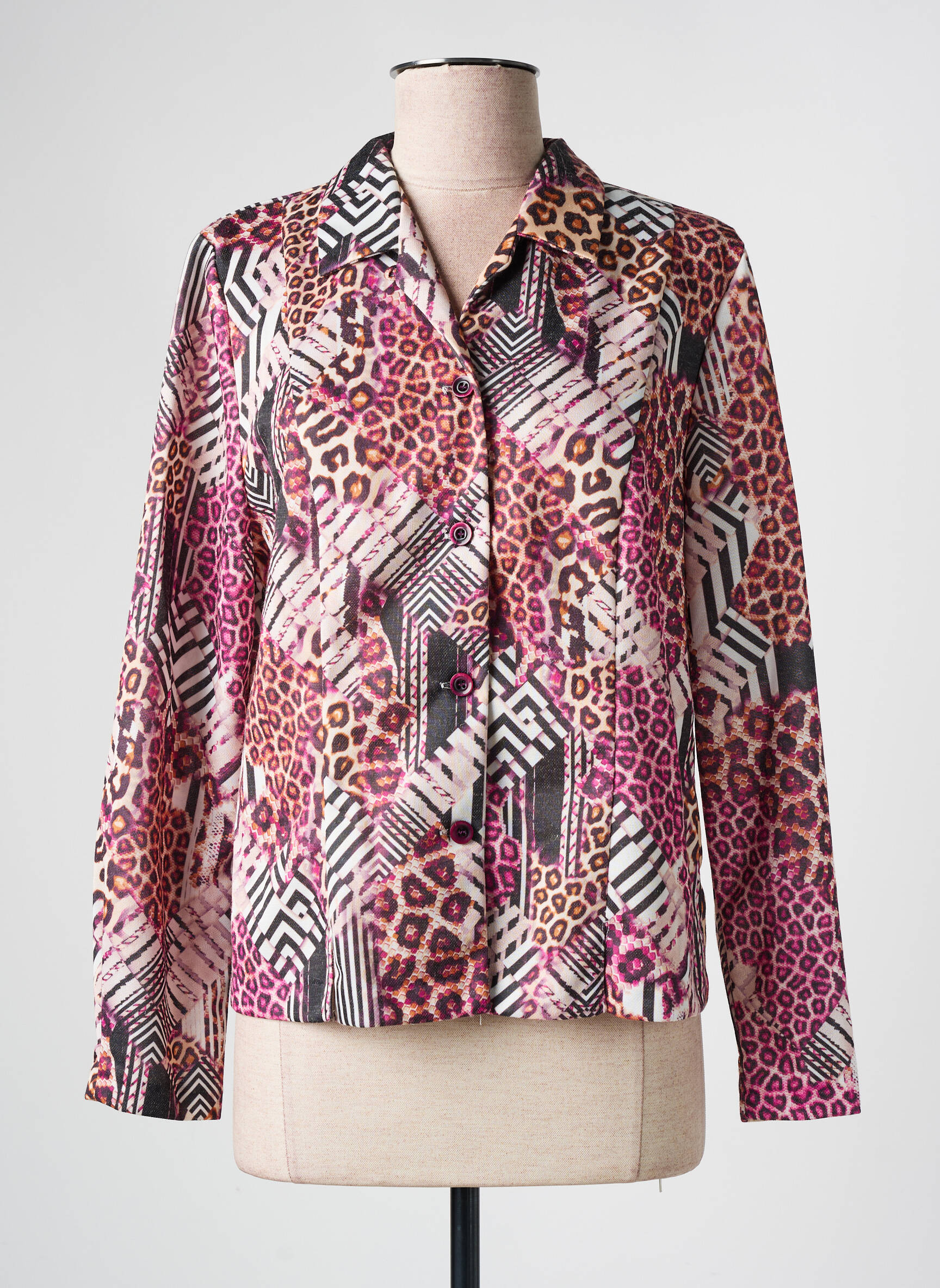 Craquez pour ce chemisier GUY DUBOUIS à prix mini, une véritable affaire pour ajouter une touche d'originalité à votre garde-robe sans vous ruiner. Avec son imprimé audacieux mêlant motifs géométriques et effet léopard dans des tons roses, bordeaux et noir, il vous offrira un style unique et tendance pour toutes les occasions. Sa coupe droite et son col classique rendent ce modèle aussi confortable qu’élégant, idéal pour dynamiser vos looks du quotidien tout en profitant d’un bon plan mode.