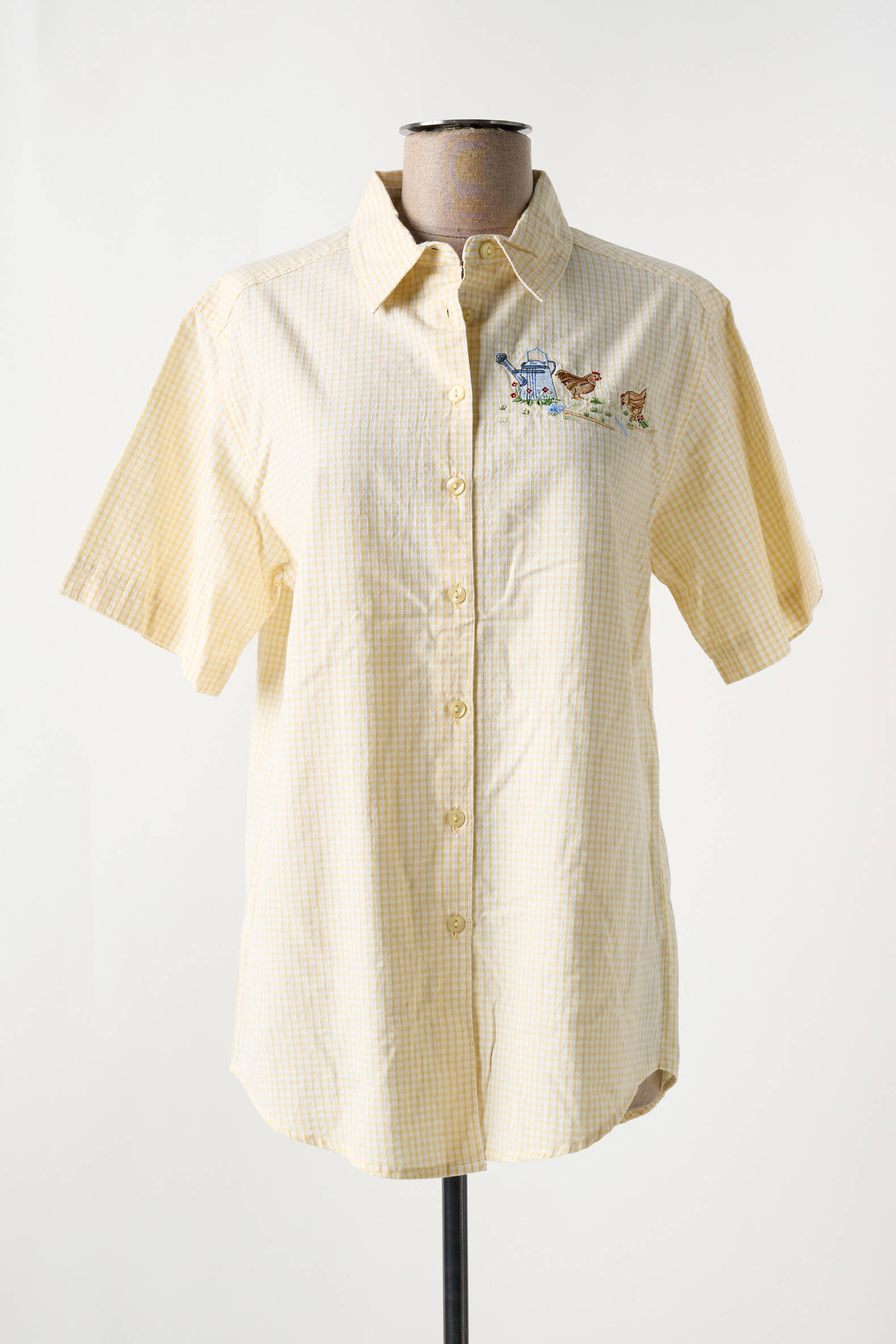 Et si votre chemisier devenait le terrain de jeu d’un charmant jardin secret ? Ce modèle signé JAC JAC dévoile une délicate base jaune pâle à fines rayures blanches, sublimée par une broderie fleurie et un petit oiseau posé sur la poitrine, qui apporte une touche poétique et pleine de fraîcheur. Les manches courtes et la coupe classique rendent ce chemisier aussi confortable que facile à porter, parfait pour égayer subtilement vos tenues du quotidien.