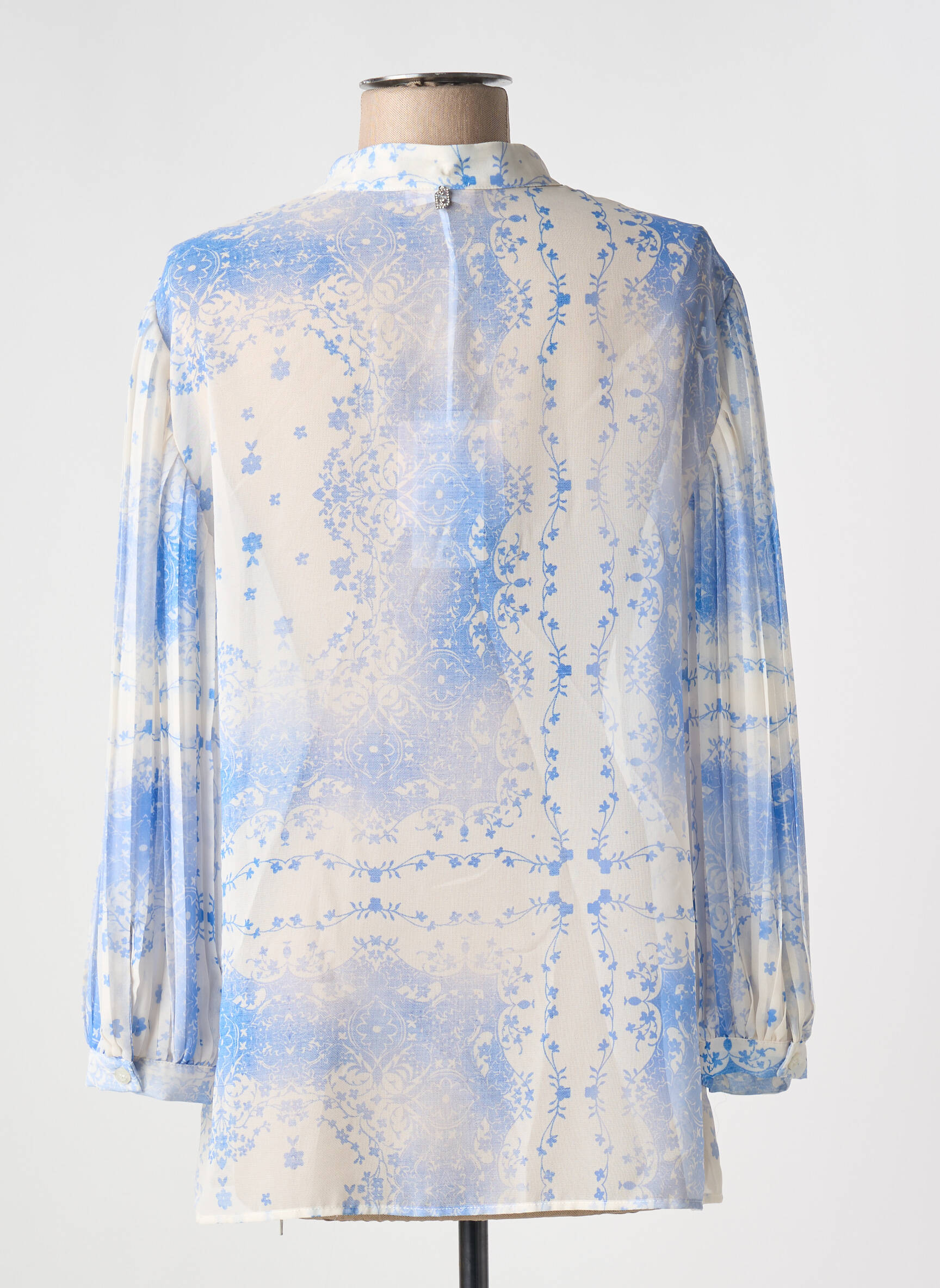 Profitez d’un bon plan mode avec ce chemisier LIU JO pour femme, qui séduit par son imprimé délicat dans des tons bleu ciel sur un fond léger et lumineux. Son col mao et ses manches longues à effet légèrement bouffant apportent une touche raffinée et moderne, idéale pour dynamiser votre dressing à petit prix, tout en gardant l’élégance d’une grande marque à prix mini.