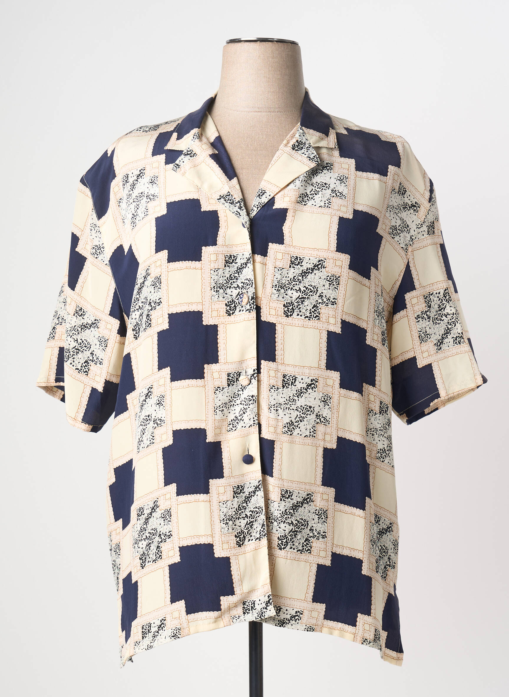 Saisissez l'occasion de vous offrir ce chemisier PRUNELLE à prix mini, parfait pour donner une touche originale à votre garde-robe sans vous ruiner. Son imprimé graphique mêlant bleu marine, beige et touches de motifs floraux lui confère un style vintage revisité, idéal à porter aussi bien au quotidien qu’en week-end, et son allure ample assure un confort sans pareil, tout en restant tendance. Profitez de cette belle affaire pour renouveler votre look à petit prix.