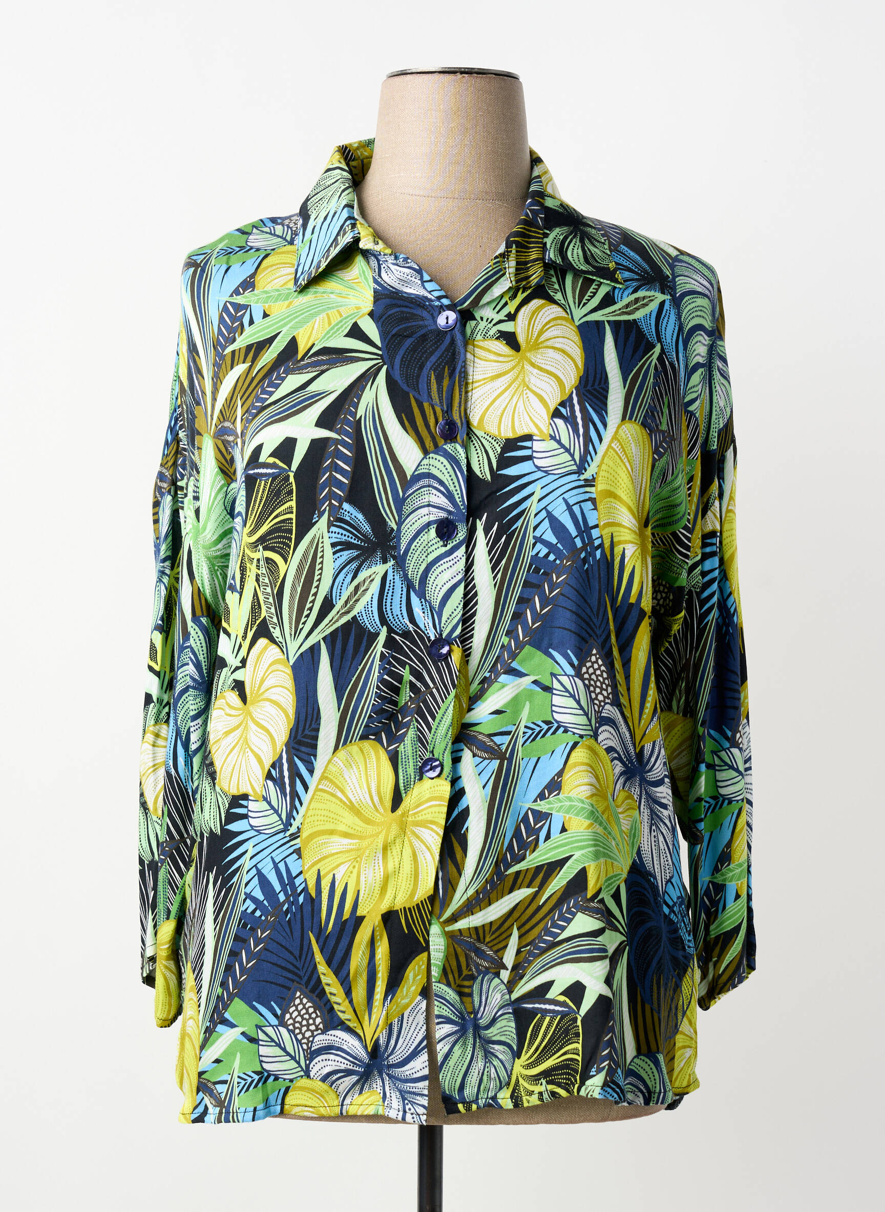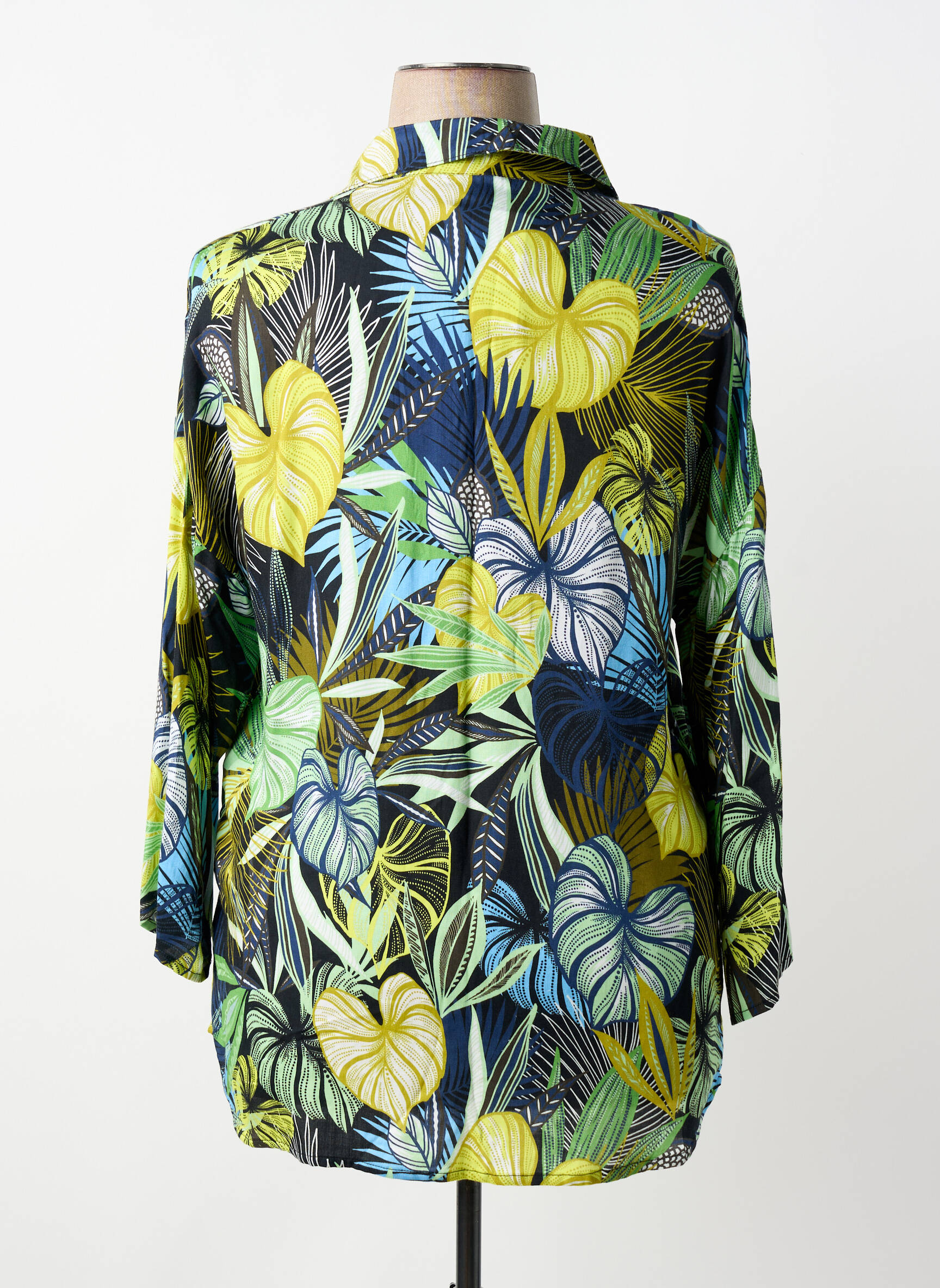Craquez pour ce chemisier femme de la marque SAINT CHARLES qui apporte une touche d’exotisme à votre dressing sans vous ruiner. Son imprimé feuillage multicolore allie subtilement des nuances de vert, de bleu et de jaune pour une allure fraîche et pleine de dynamisme, tandis que sa coupe fluide assure confort et élégance au quotidien. Profitez d’un style unique à prix dégriffé, pour un look tendance à petit prix.