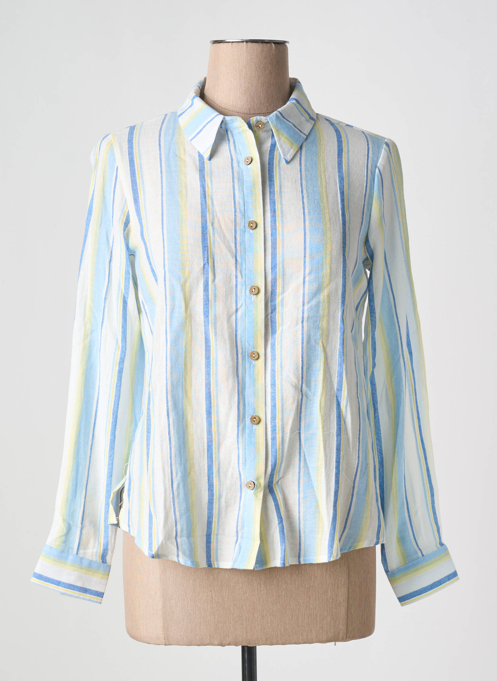 Profitez d’une superbe affaire avec ce chemisier pour femme signé SUN VALLEY, proposé à prix mini pour un look frais et tendance sans se ruiner. Ce modèle séduit par sa coupe décontractée et son imprimé rayé aux teintes douces de bleu, jaune et blanc, qui apporte une touche de lumière à votre vestiaire de saison. On aime sa boutonnière classique, son col chemise et ses manches longues, parfaits pour composer une silhouette élégante en toute simplicité. Ce chemisier est une vraie opportunité mode à ne pas laisser passer pour se faire plaisir à petit prix.