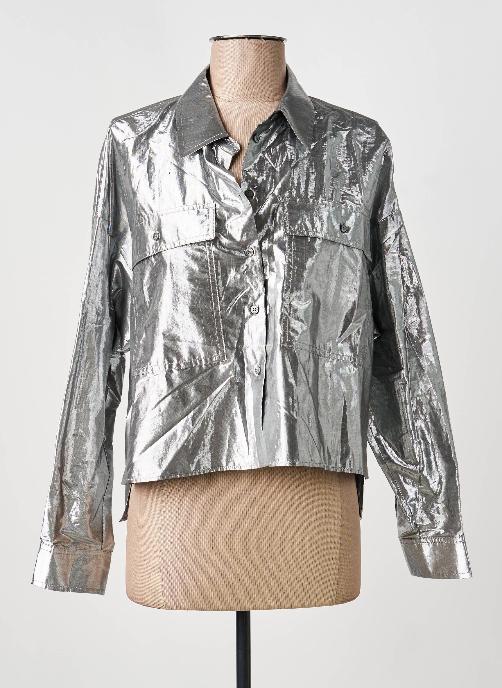Ce chemisier capte la lumière et attire tous les regards, il s’accorde particulièrement bien avec un jean brut pour un effet casual-chic ou avec une jupe noire pour une allure plus sophistiquée. Ajoutez une paire de baskets blanches pour une touche urbaine ou optez pour des escarpins sobres qui mettront en valeur son style unique lors de vos sorties en soirée. Pour une superposition réussie, une veste en cuir noire ou un blazer ajusté apporteront une touche d’élégance supplémentaire, tout en restant dans l’esprit mode à petit prix.