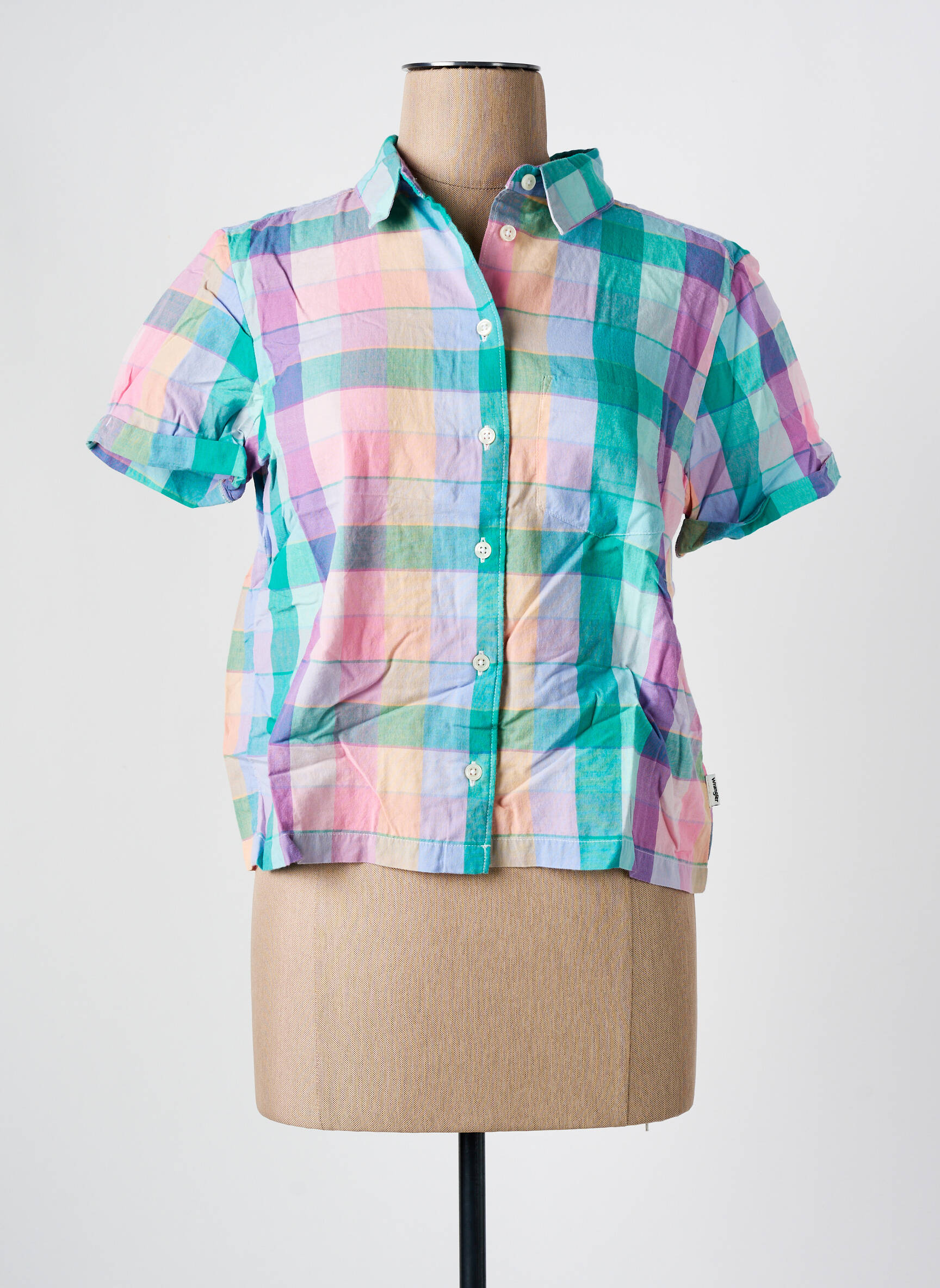 Craquez pour ce chemisier Wrangler, un vrai bon plan pour apporter une touche de fraîcheur à votre dressing sans vous ruiner. Sa coupe courte à manches courtes et son imprimé à grands carreaux multicolores en font une pièce tendance, parfaite pour rehausser vos tenues estivales avec style et légèreté. À saisir vite pour un effet mode assuré à prix mini !