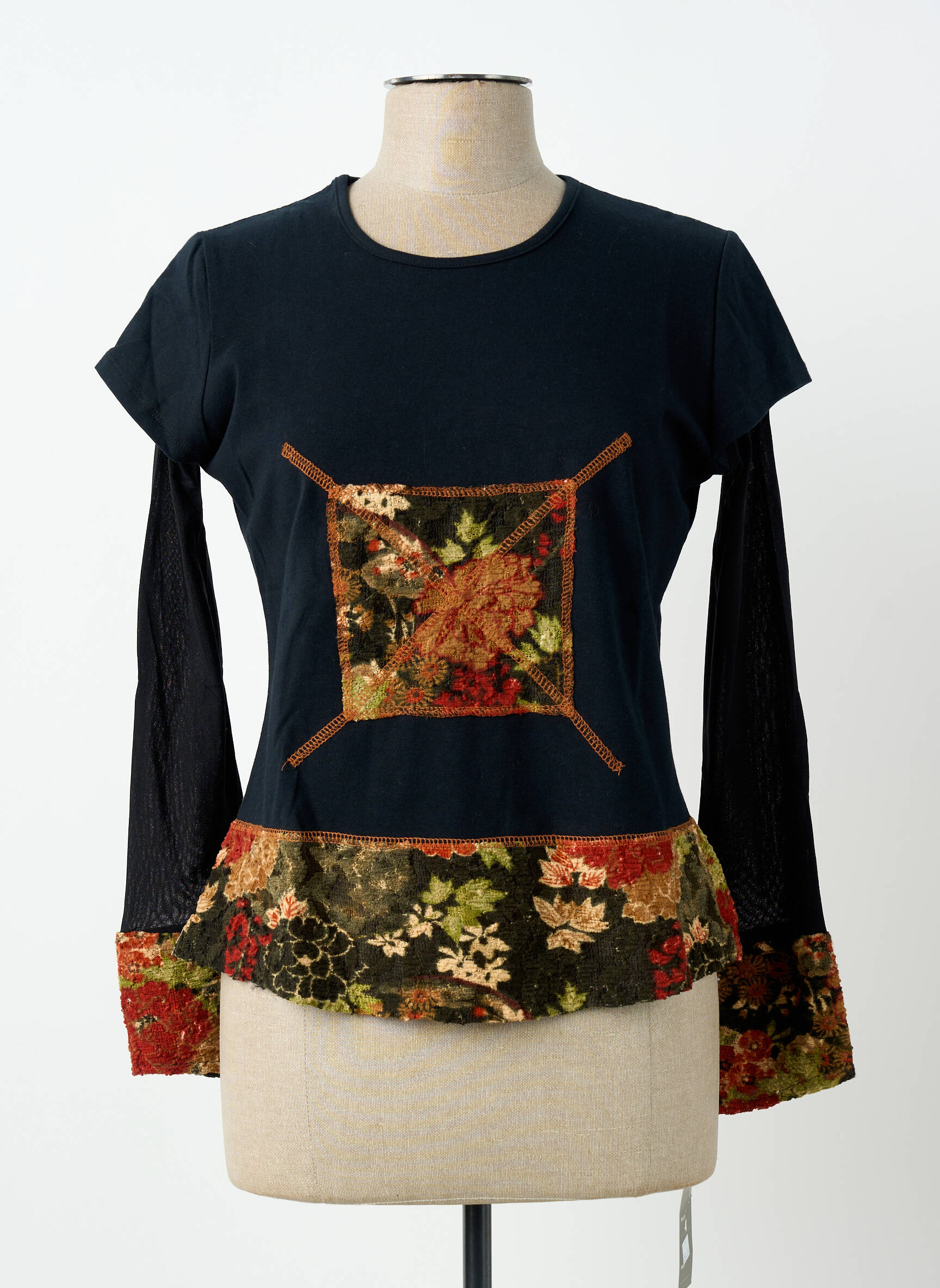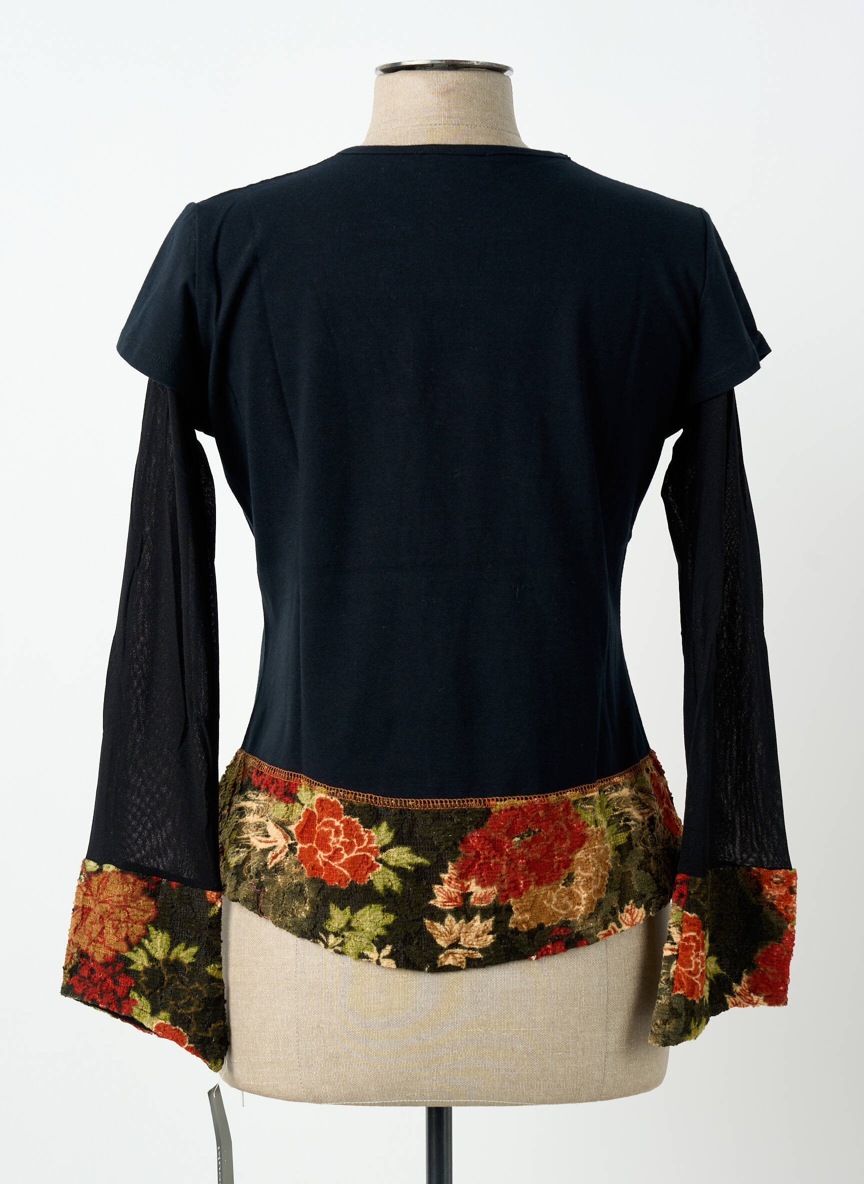 Profitez d’un vrai bon plan avec ce top signé #127344 qui mise sur l’originalité sans faire exploser le budget. Ce modèle unique mélange le noir classique à des touches fleuries colorées au niveau des manches et de la base, ainsi qu’un empiècement central façon patchwork qui apporte une jolie note créative et bohème. Parfait pour donner du style à votre tenue tout en réalisant des économies, ce top élégant et tendance s’adapte à toutes vos envies du quotidien.