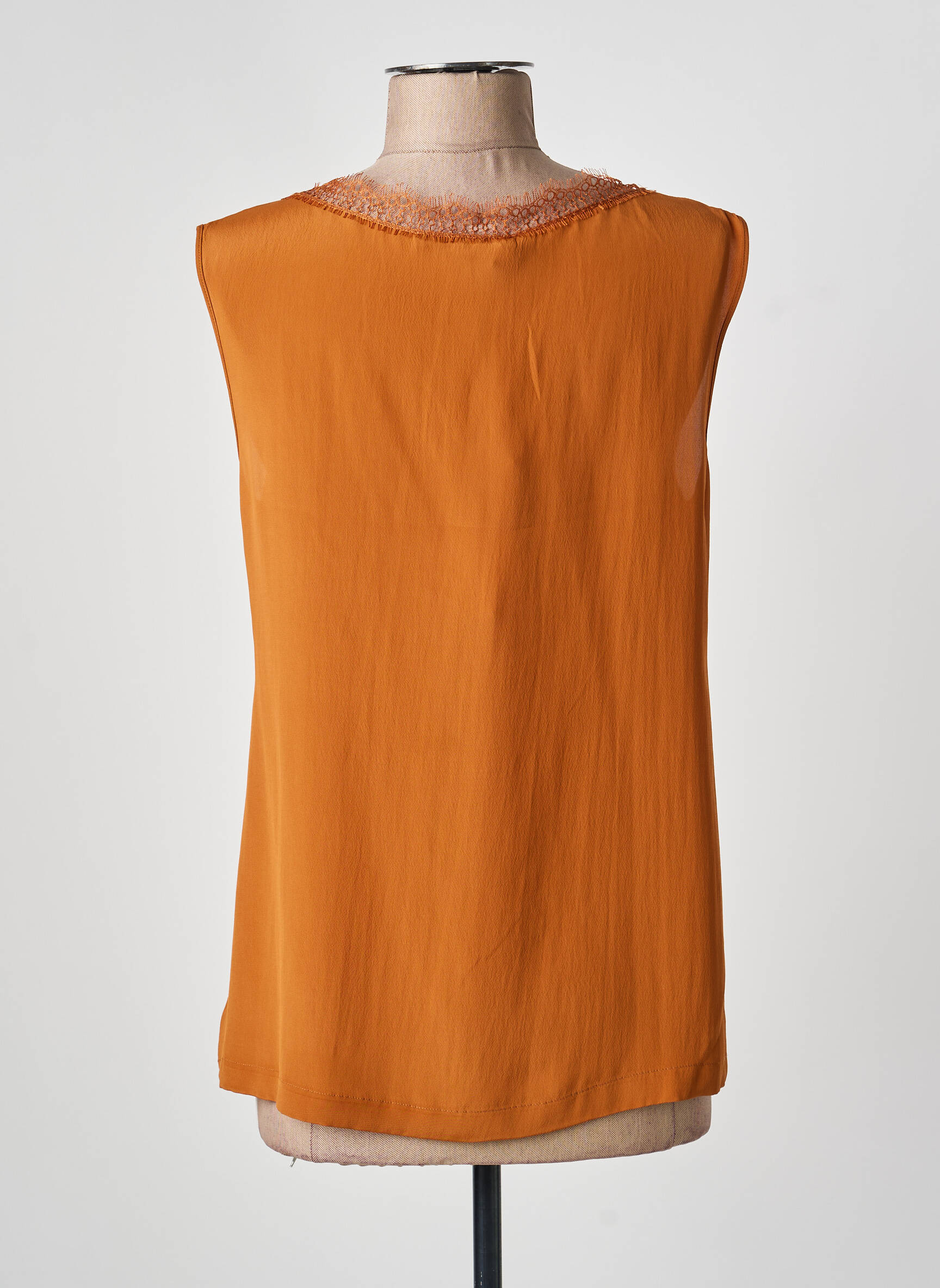 Saisissez l'occasion de vous offrir un top chic signé ALBERTA FERRETTI à prix tout doux grâce à notre sélection déstockage. Ce modèle sans manches séduit par sa ligne fluide et son col en V délicatement orné d'une fine bordure en dentelle, apportant une touche de raffinement à une teinte chaleureuse et tendance parfaite pour rehausser votre garde-robe à moindre coût.