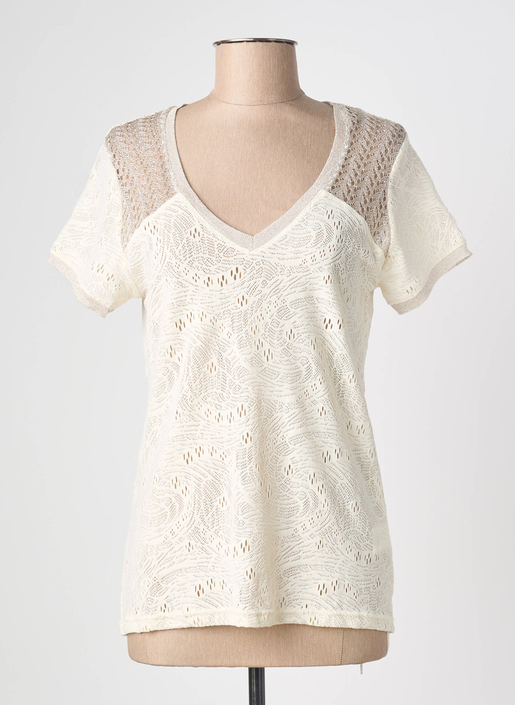 Top An' Ge Beige Manches Courtes