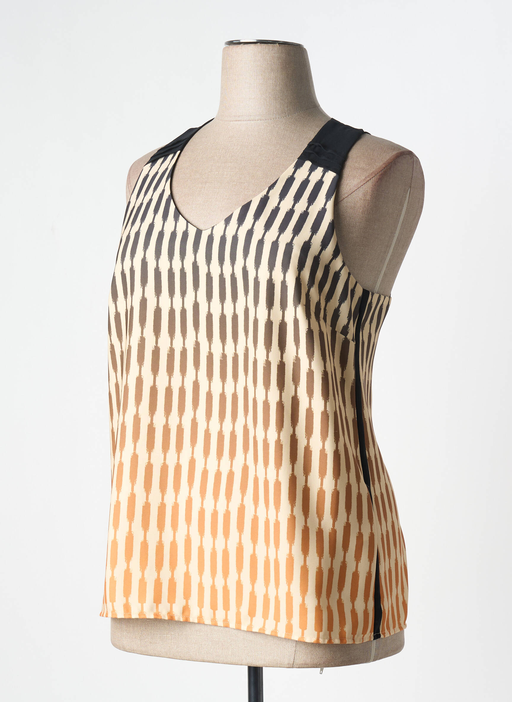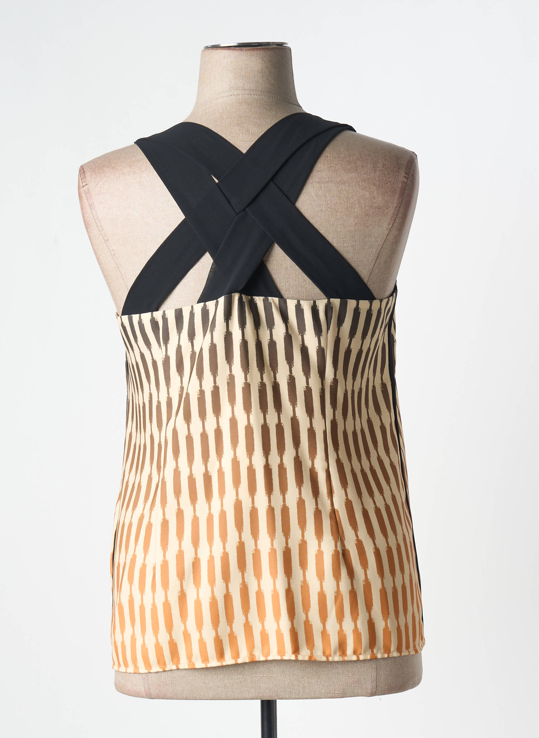Craquez pour ce top femme ANDAMIO, un véritable bon plan pour apporter une touche graphique et élégante à votre dressing sans vous ruiner. Son motif géométrique dégradé du noir au beige et à l’orange apporte modernité et originalité, tandis que ses larges bretelles et son encolure en V vous garantissent confort et allure au quotidien. Voilà une pièce tendance à petit prix, idéale pour upgrader votre look en un clin d’œil !