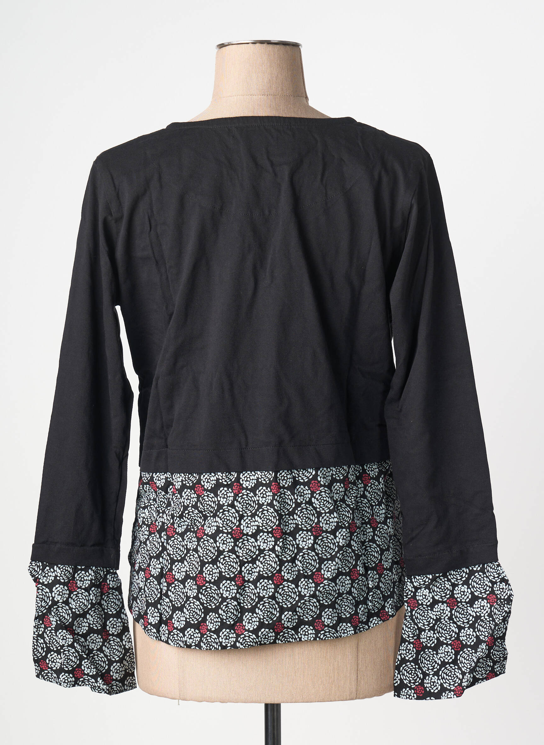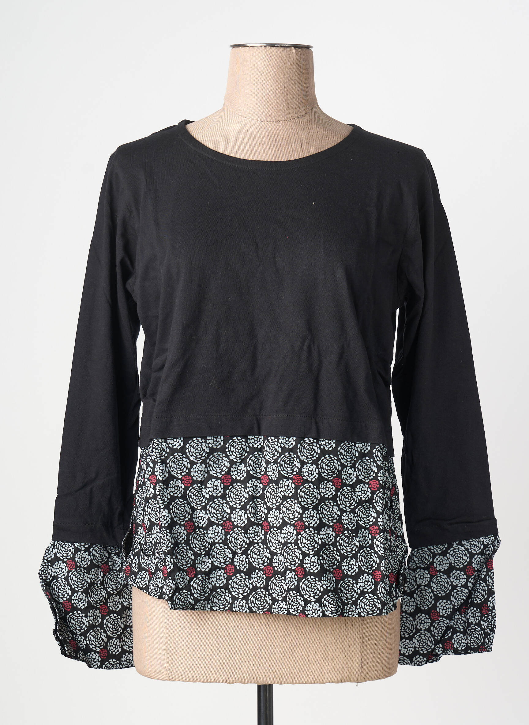 Profitez d’une véritable affaire avec ce top BAMBOO pour femme, une pièce à prix doux qui vous permet d’allier style et économies. Son design bi-matière combine le noir uni élégant sur le haut et les manches, avec une base et un bas de manches aux motifs floraux subtils relevés de touches de rouge, pour une allure originale et tendance qui se démarque facilement au quotidien. C’est l’option idéale pour renouveler votre dressing sans vous ruiner et ajouter une touche de fantaisie à vos looks.
