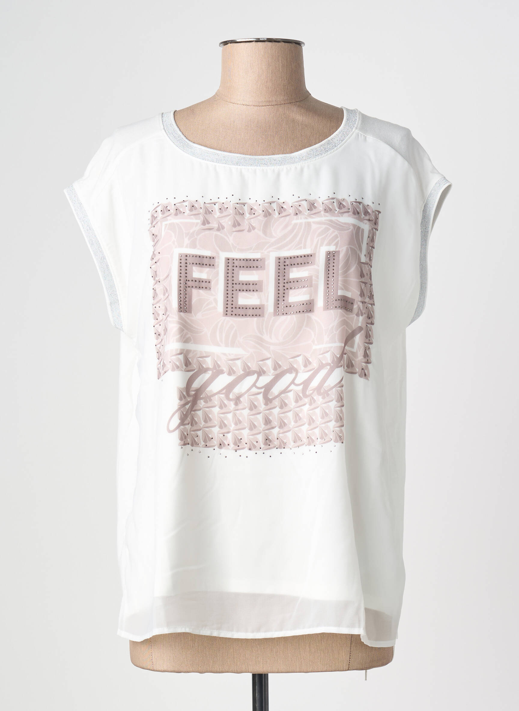 Craquez pour ce top Betty Barclay à prix mini, parfait pour ajouter une touche tendance à votre dressing sans vous ruiner. Son design épuré, sublimé par une inscription moderne "FEEL GOOD" sur le devant, en fait une pièce facile à porter au quotidien, aussi bien avec un jean qu'une jupe. Sa coupe décontractée offre un maximum de confort tout en assurant un look moderne et féminin, idéal pour profiter d'une bonne affaire mode tout en restant stylée.