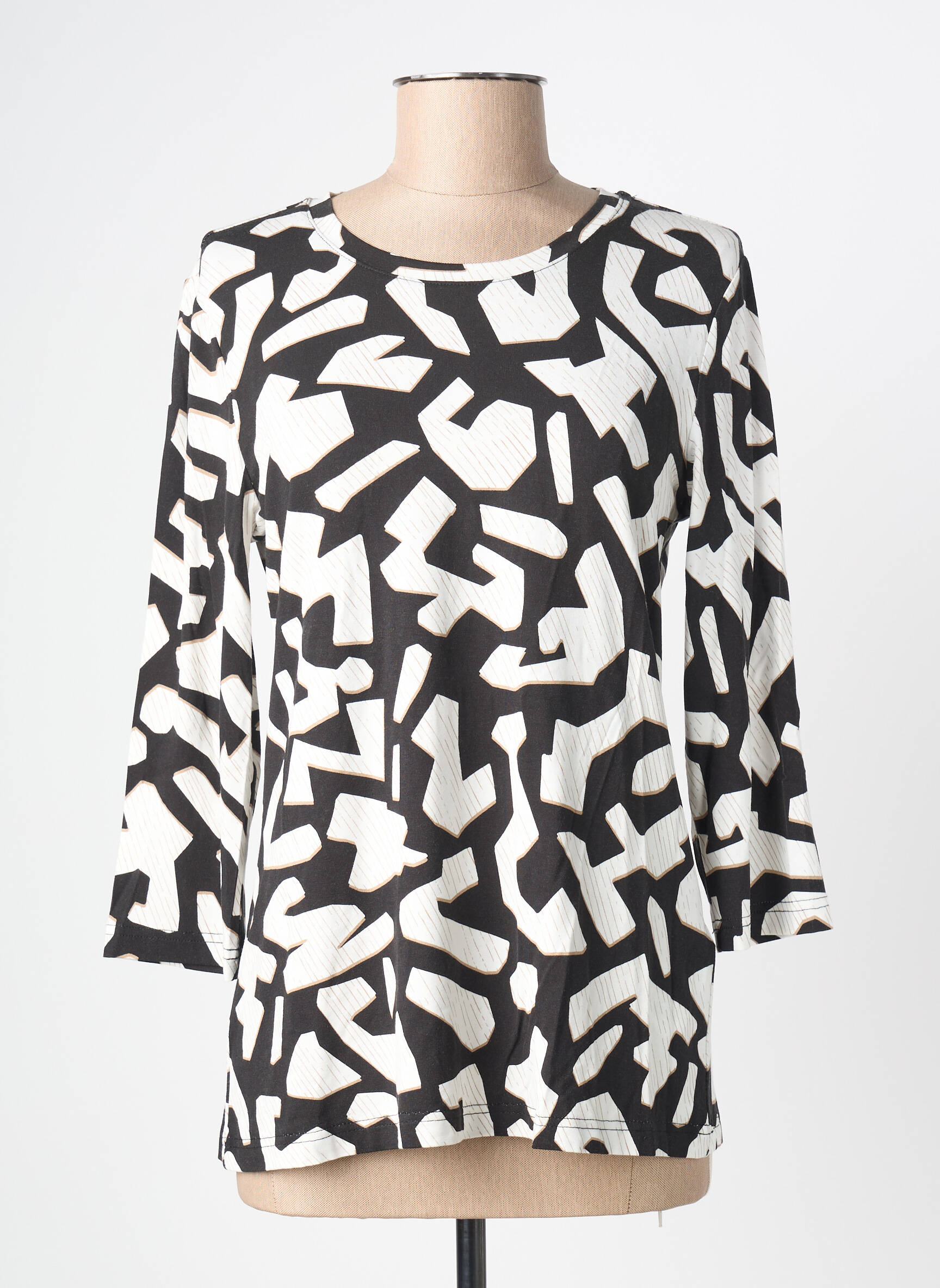 Optez pour un look tendance à petit prix avec ce top Brandtex pour femme, qui séduit par son imprimé graphique noir et blanc plein d’originalité. Sa coupe confortable et ses manches trois-quarts en font la pièce idéale pour dynamiser votre vestiaire sans vous ruiner, parfaite pour profiter d’un style moderne à prix malin.