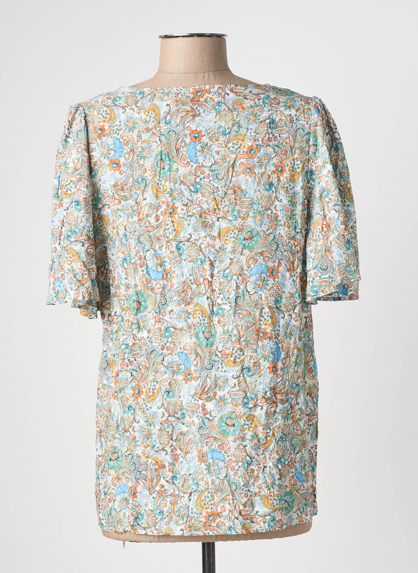 Saisissez l'occasion de faire des économies avec ce top C'EST BEAU LA VIE pour femme, une pièce idéale pour renouveler votre garde-robe sans vous ruiner. Son imprimé floral délicat aux tons bleus, orangés et verts apporte une note fraîche et colorée, tandis que sa coupe à manches courtes et son joli décolleté en V offrent un look décontracté et féminin. Ce haut polyvalent s’associe facilement à vos jeans comme à vos jupes, pour un style à petit prix qui ne sacrifie rien à l’élégance.