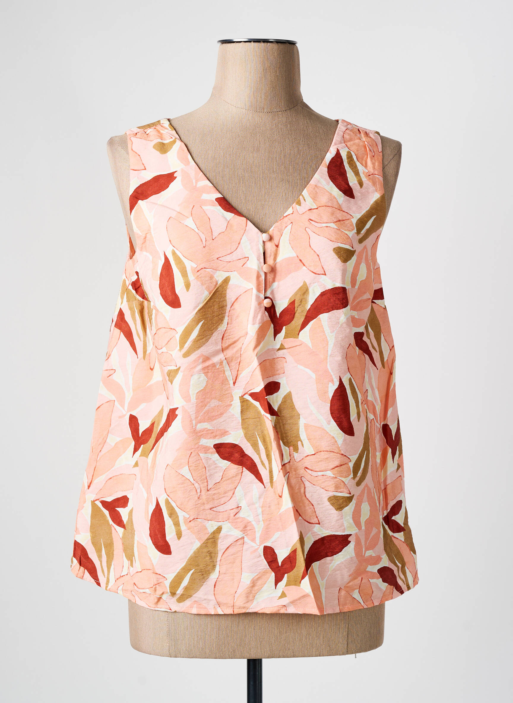 Profitez d’une véritable affaire avec ce top C’EST BEAU LA VIE pour femme, parfait pour apporter une touche de fraîcheur à votre garde-robe sans vous ruiner. Sa coupe fluide et légèrement évasée met en valeur un imprimé feuillu aux teintes douces de rose, corail et ocre, idéal pour illuminer toutes vos tenues estivales avec élégance. Son encolure en V et ses bretelles larges apportent une note féminine et décontractée, tout en assurant un confort optimal au quotidien. C’est l’option idéale pour celles qui veulent conjuguer style et petits prix sur un vrai bon plan mode.