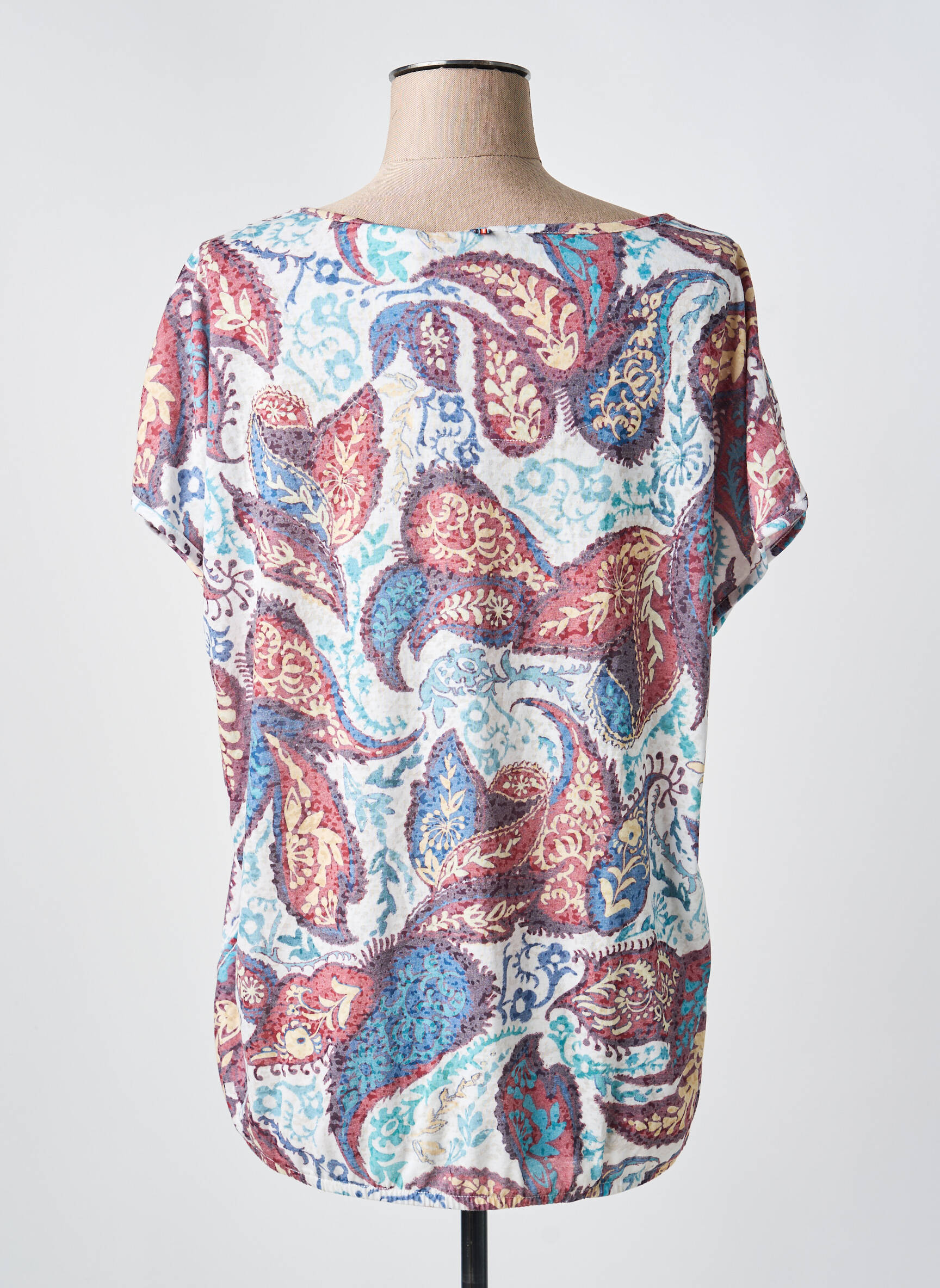 Ce top se marie parfaitement avec un jean brut ou un pantalon uni pour valoriser ses motifs colorés et apporter une note de fraîcheur à vos tenues du quotidien. Vous pouvez aussi le glisser sous une veste légère pour un look plus chic, ou l’associer à une jupe fluide pour une allure bohème et estivale. Côté accessoires, privilégiez des bijoux fins et un sac sobre pour laisser toute la place au motif éclatant de ce vêtement, idéal pour dynamiser une silhouette sans effort.