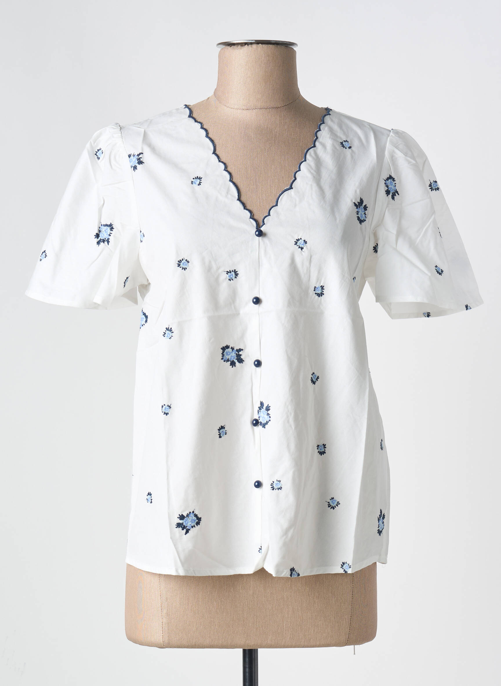 Profitez d’un véritable bon plan mode avec ce top CERISE BLUE pour femme, un incontournable à petit prix pour rafraîchir votre dressing sans se ruiner. Ce modèle séduit par sa coupe féminine et son délicat motif fleuri bleu, rehaussé par une encolure en V ornée d’un bord ondulé contrastant. Les manches courtes légèrement bouffantes apportent une touche romantique, tandis que la boutonnière discrète accentue la finesse de la silhouette. C’est la pièce idéale à adopter pour un style estival chic, tout en maîtrisant parfaitement son budget.