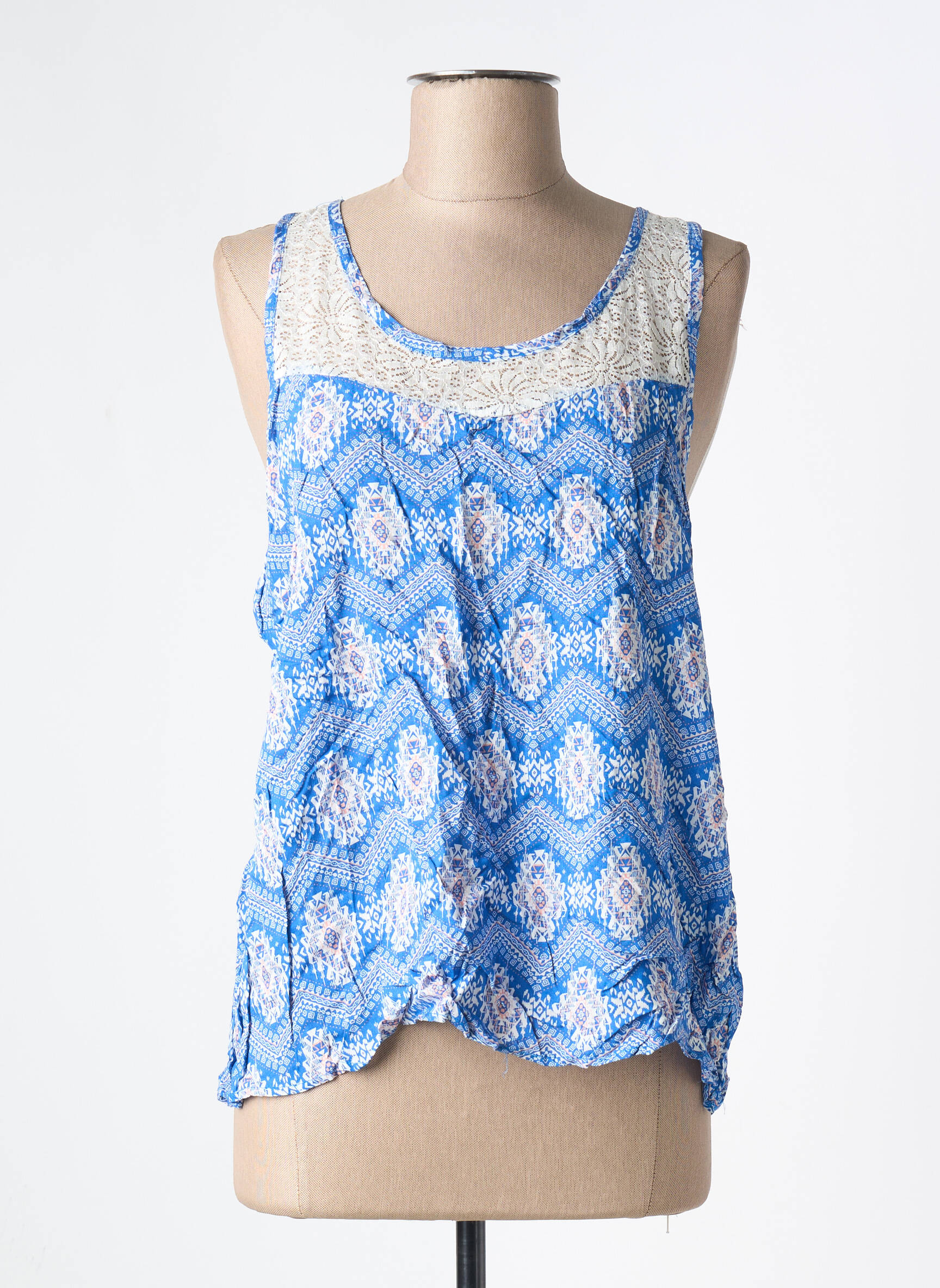 Craquez pour ce top CERISE BLUE pour femme, une véritable affaire à ne pas manquer pour dynamiser votre garde-robe sans vous ruiner. Sa coupe décontractée met en valeur un imprimé bleu graphique tendance, relevé par un empiècement délicat façon dentelle à l’encolure, parfait pour apporter une touche à la fois féminine et moderne à vos tenues d’été. Ce haut léger est idéal pour composer facilement des looks frais et stylés à petit prix.