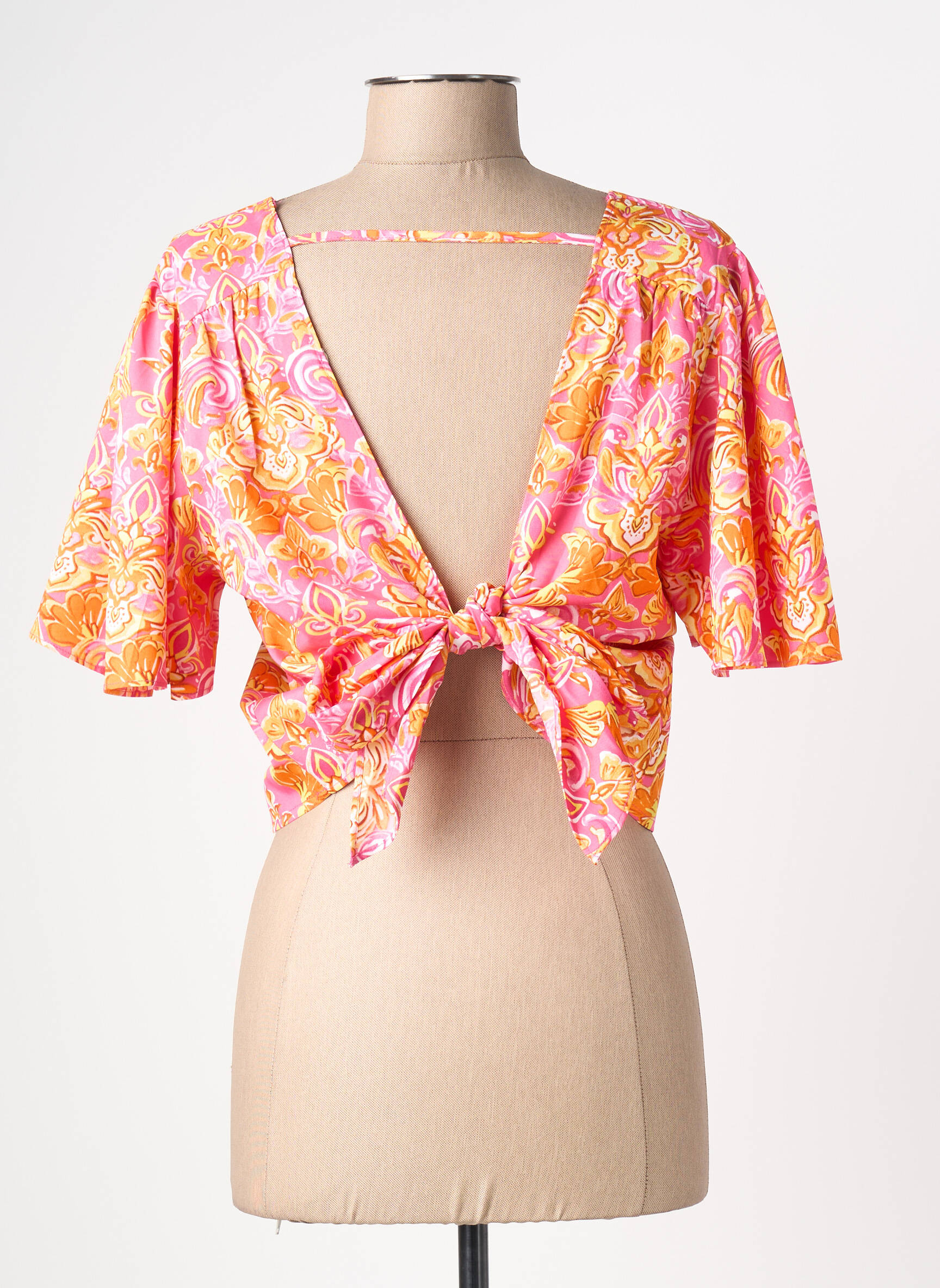 Craquez pour ce top CERISE BLUE pour femme, une véritable opportunité à petit prix pour apporter une touche colorée et tendance à votre dressing. Ce haut affiche un imprimé vif mêlant des nuances de rose, d’orange et de jaune, parfait pour illuminer vos looks d’été ou dynamiser vos tenues au quotidien. Sa coupe courte et fluide, combinée à des manches amples et un joli décolleté en V, offre un style décontracté tout en restant féminin. C’est le bon plan idéal pour se faire plaisir et renouveler sa garde-robe sans se ruiner !