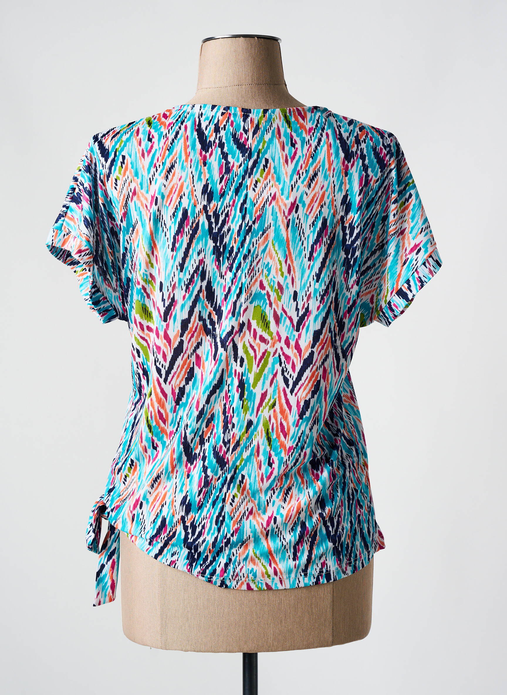 Profitez d'une superbe opportunité avec ce top CHRISTINE LAURE pour femme, un indispensable à prix cassé pour apporter de la couleur à votre garde-robe sans sacrifier votre budget. Avec son imprimé graphique multicolore dynamique et sa coupe fluide, il propose une touche moderne et décontractée, tandis que le détail noué sur le côté ajoute une finition féminine et raffinée, idéale pour dynamiser vos looks du quotidien tout en faisant de vraies économies.