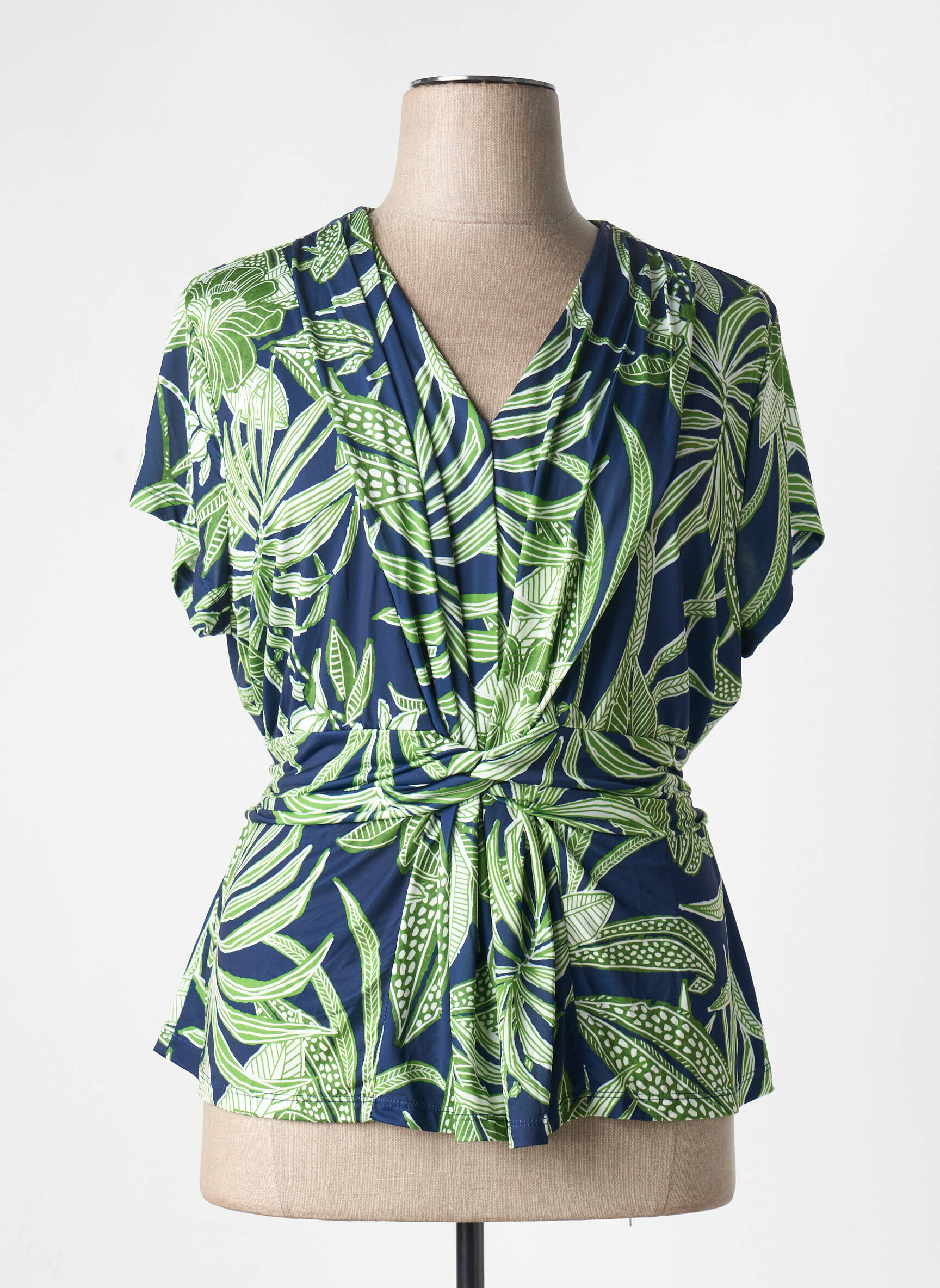 Profitez d'une belle opportunité avec ce top CHRISTINE LAURE pour femme, parfait pour apporter une touche d’originalité à votre garde-robe à petit prix. Sa coupe fluide et son imprimé feuillage vert sur fond bleu offrent un style frais et tendance, tandis que le joli nœud à la taille sublime la silhouette avec élégance. C’est le choix idéal pour allier confort et allure sans se ruiner, et faire des économies sur un basique chic et facile à porter au quotidien.