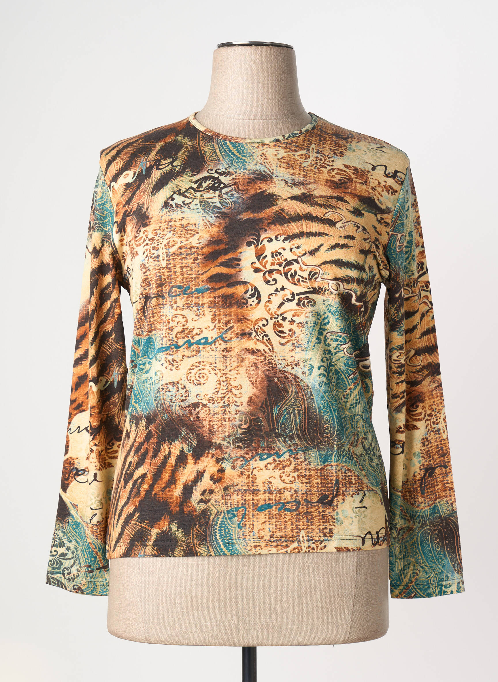Craquez pour ce top femme signé CLAUDE DE SAIVRE, la pièce idéale pour s'offrir une touche d’originalité sans se ruiner. Son imprimé mêlant des motifs animaliers et des touches colorées apporte une allure unique et tendance, parfaite pour dynamiser votre garde-robe à prix doux. Ce top à manches longues, offre un style voyant et élégant qui s’adapte aussi bien à un jean décontracté qu’à une jupe plus habillée, le tout en profitant d’un vrai bon plan mode.