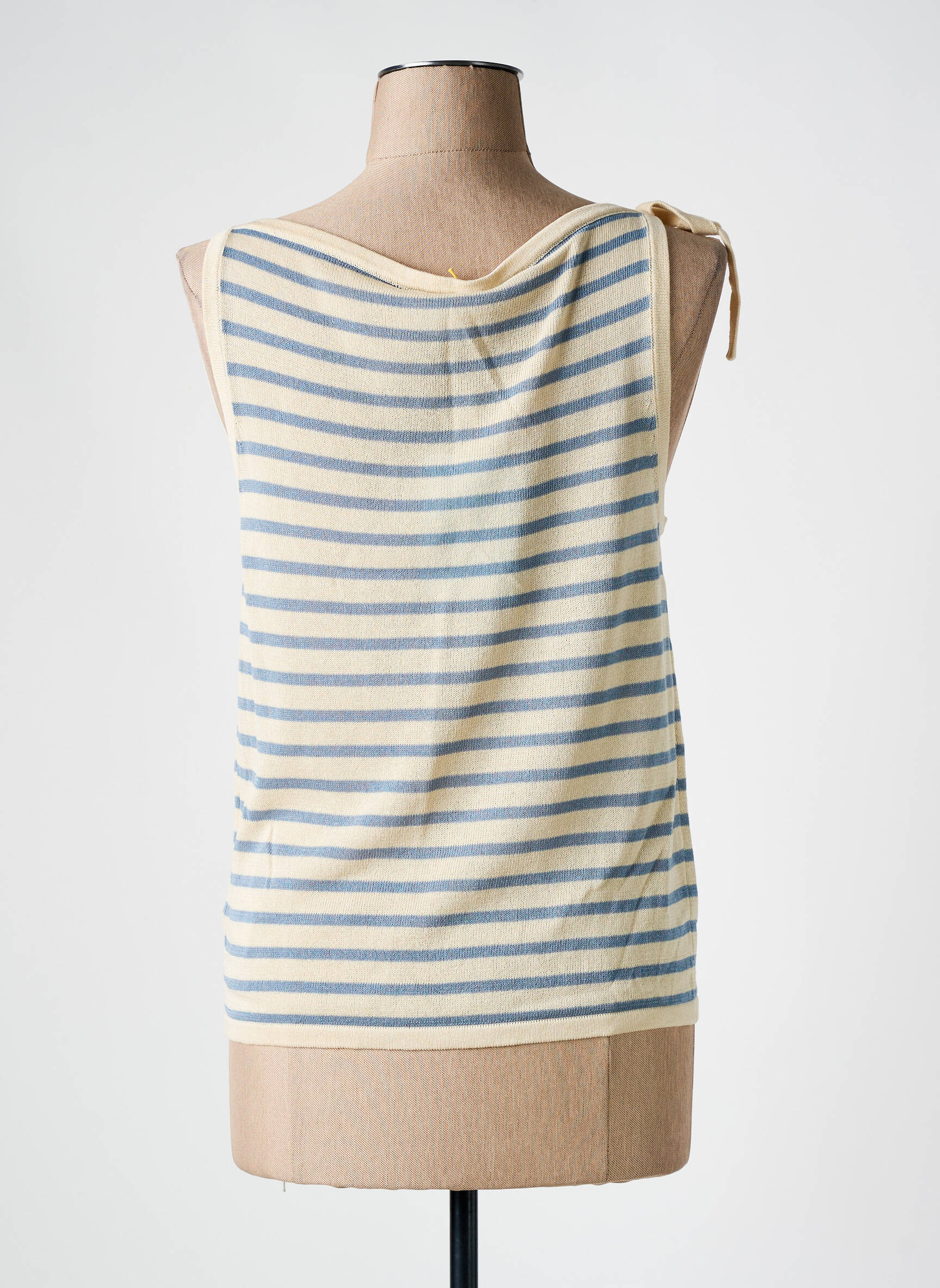Profitez d’un vrai bon plan avec ce top signé COMPAÑIA FANTASTICA, idéal pour ajouter une touche légère et tendance à votre dressing sans vous ruiner. Son motif à rayures bleu et beige apporte une note estivale et décontractée, tandis que la coupe droite et l’encolure dégagée offrent un confort parfait pour le quotidien. Laissez-vous séduire par son petit nœud délicatement placé sur l’épaule, qui fait tout le charme de ce modèle à prix mini.