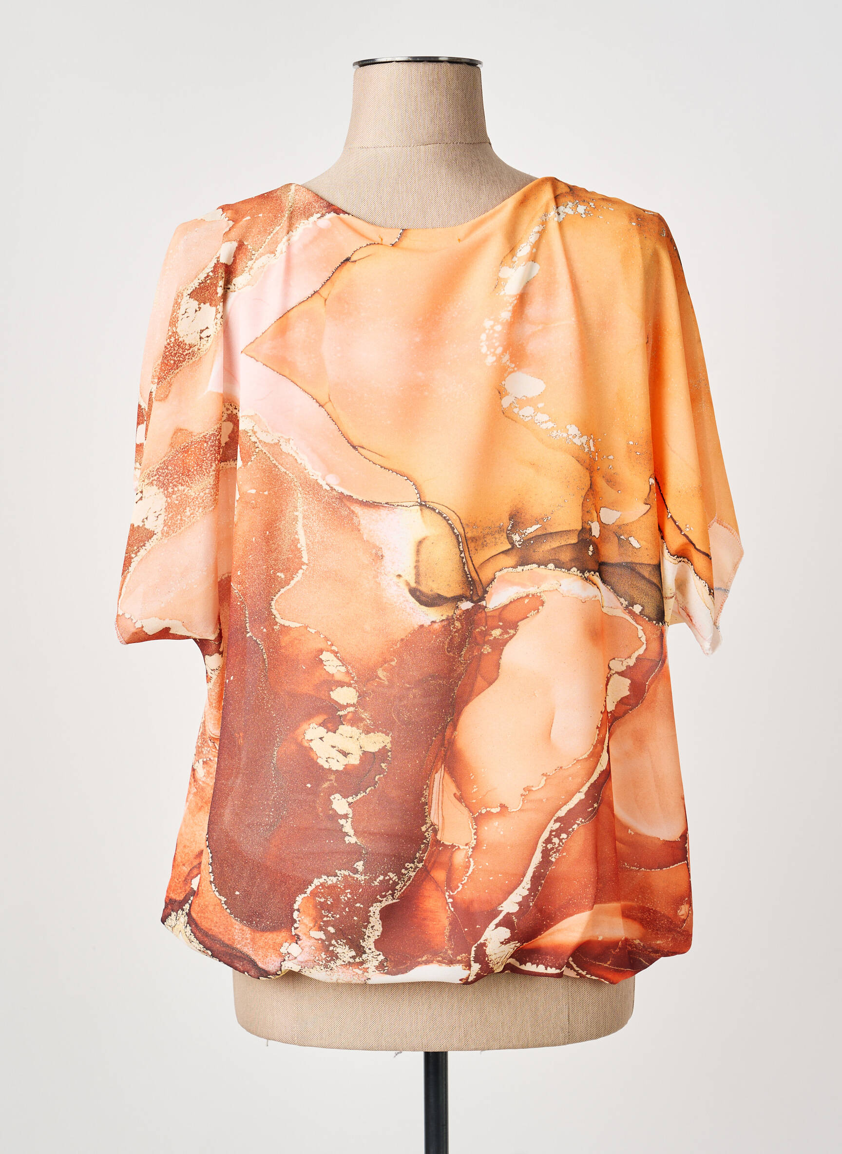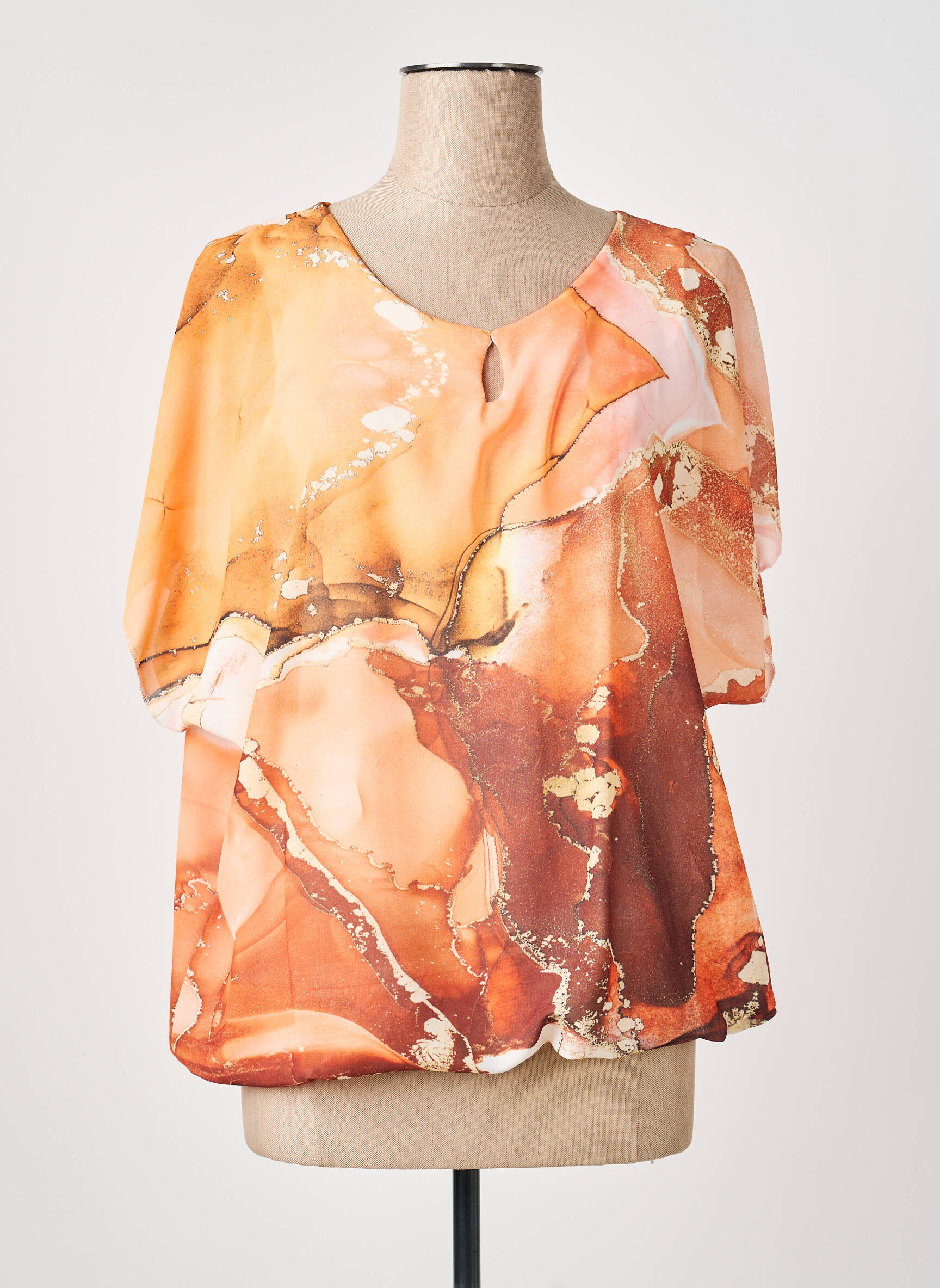 Profitez d’un vrai bon plan avec ce top COULEURS DU TEMPS pour femme qui allie élégance et originalité à petit prix. Sa coupe fluide met en valeur toutes les silhouettes tandis que son tissu léger, sublimé par un motif aux nuances orangées et terre cuite, donne une touche de chaleur et de modernité à votre tenue. C’est l’occasion parfaite de renouveler votre dressing sans vous ruiner, tout en apportant une note artistique et lumineuse à vos looks du quotidien.